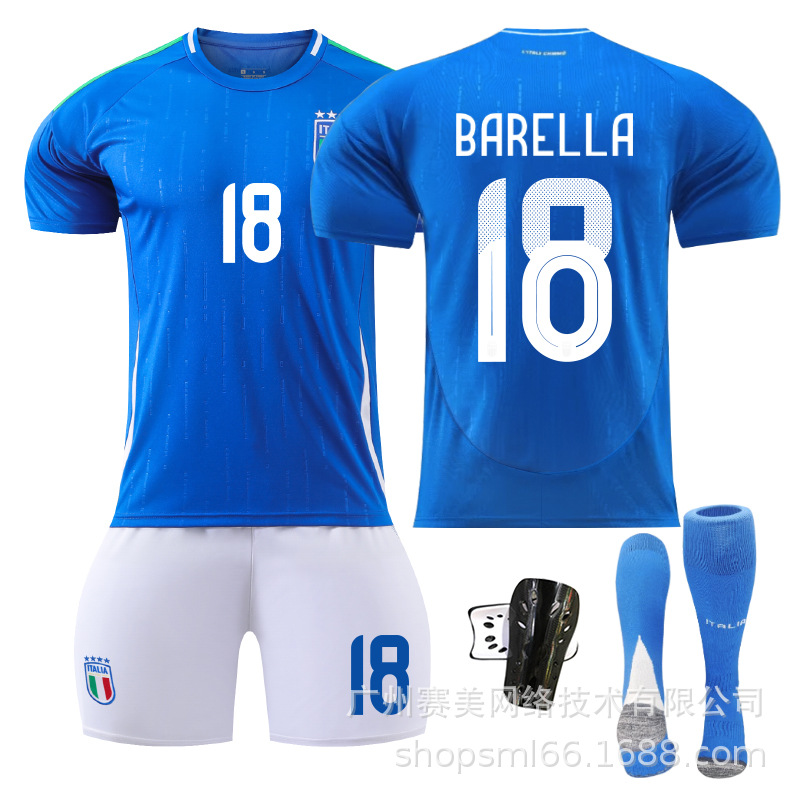 Euro 2024 Italian home football No.6 Villati 14 Chiesa No.18 Barrera jersey set