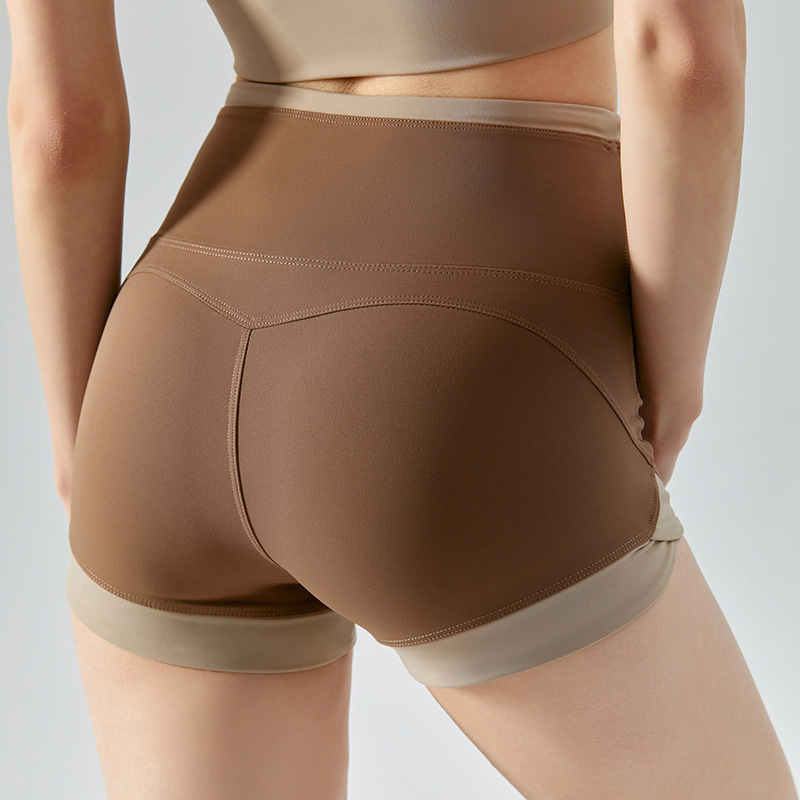 No Embarrassment Line Yoga Shorts Women's Naked Peach Sports Shorts High Waist Belly Tight Hip Breathable Fitness Three-point Pants
