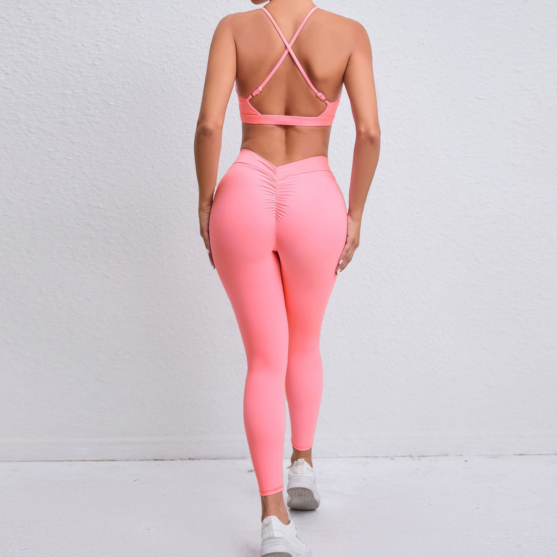 | nameOriginal | European and American new nude yoga clothes cross back sports tight suit running breathable quick-drying fitness two-piece suit |