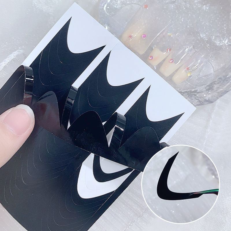 | nameOriginal | New online celebrity hollow French style inkjet nail patch Crescent smile wave DIY spray gun nail stickers wholesale |