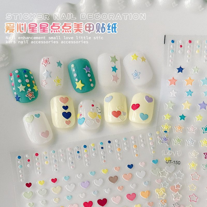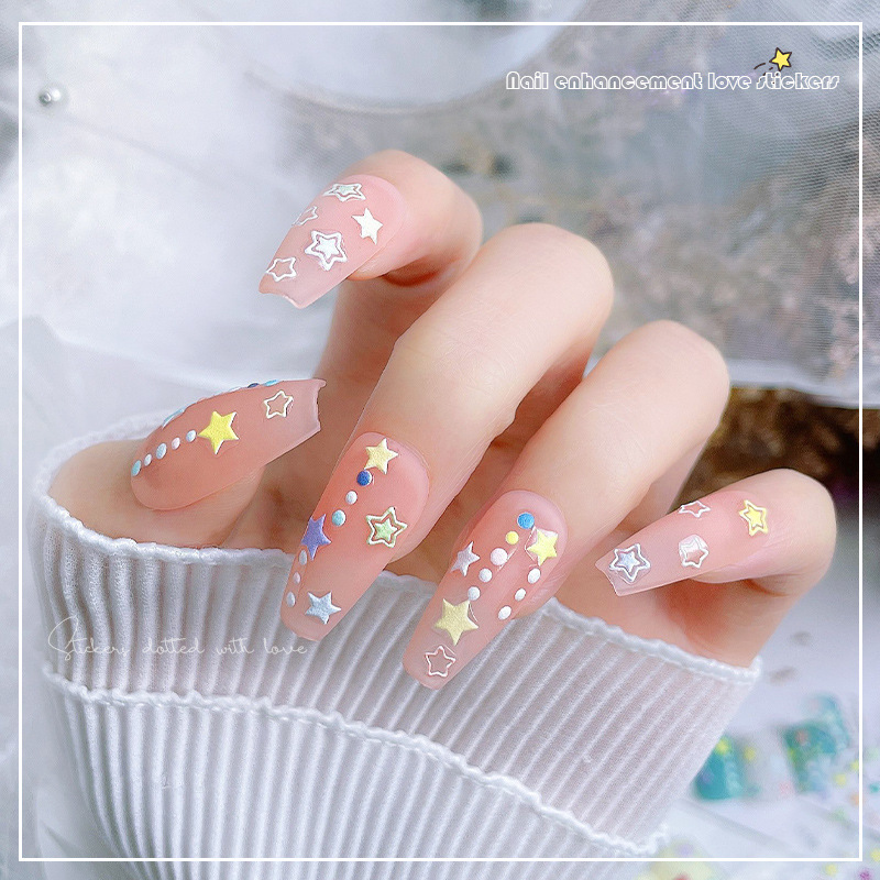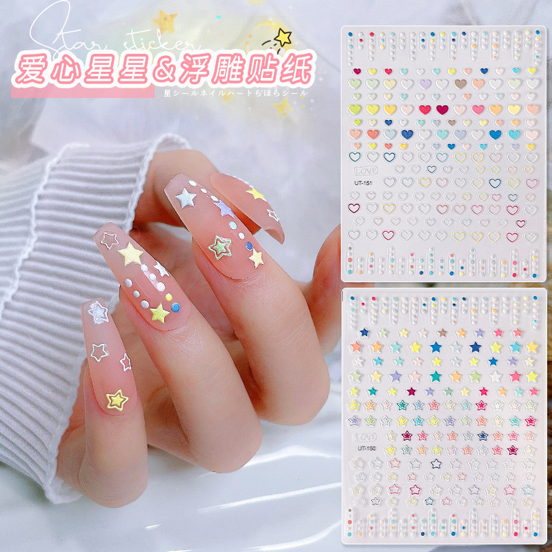 | nameOriginal | Net red nail art star relief sticker pink blue gradient hollow five-pointed star love color nail explosion small decal |
