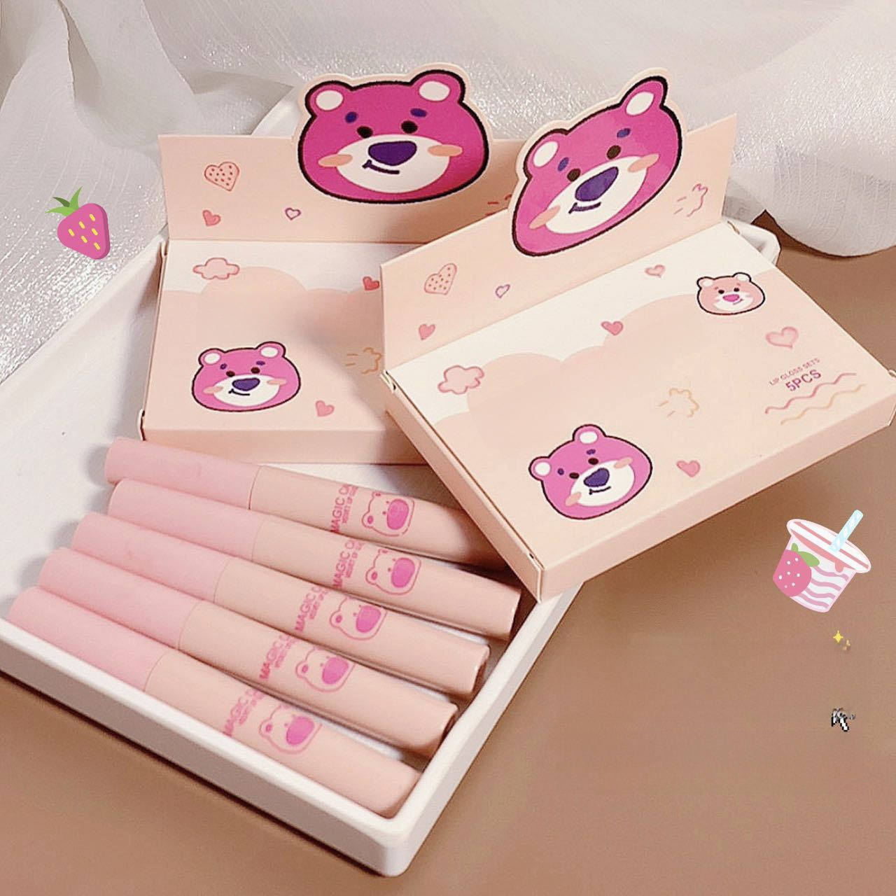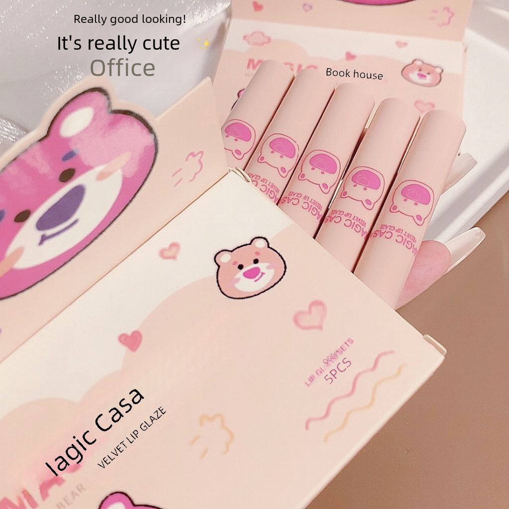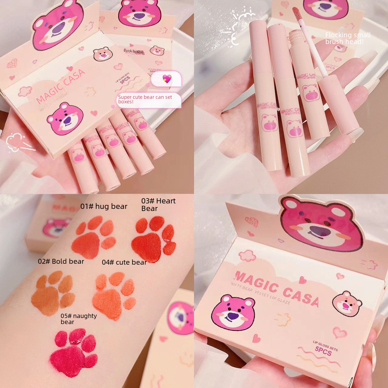 | nameOriginal | Running quantity of five cute bear lip glaze set Matte Velvet does not fade white mouth red lip mud makeup wholesale |