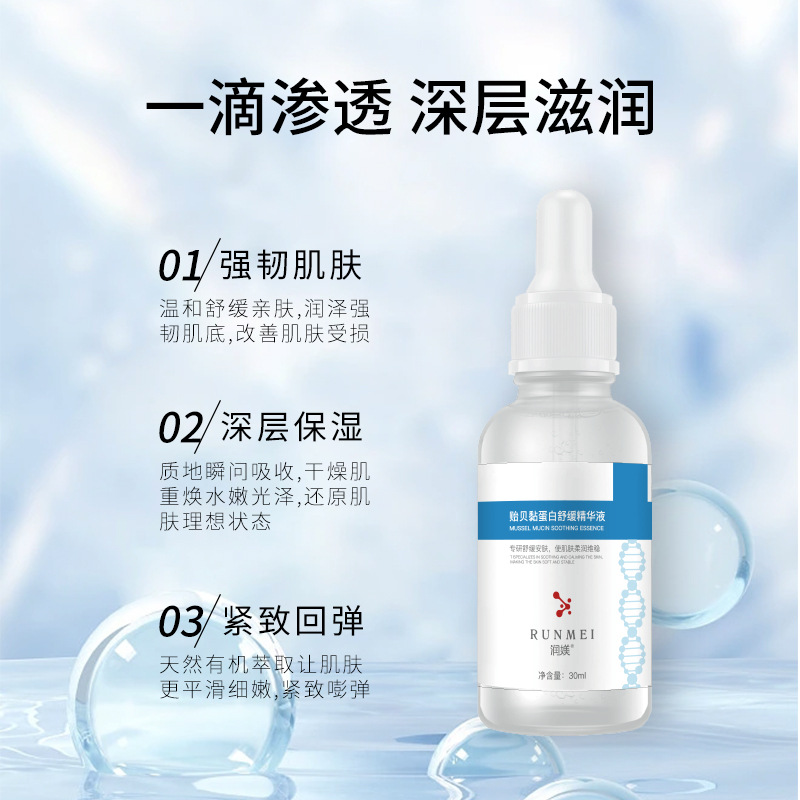 | nameOriginal | Mussel mucin repair essence sensitive acne skin problem Skin Repair Moisturizing medical beauty essence liquid |