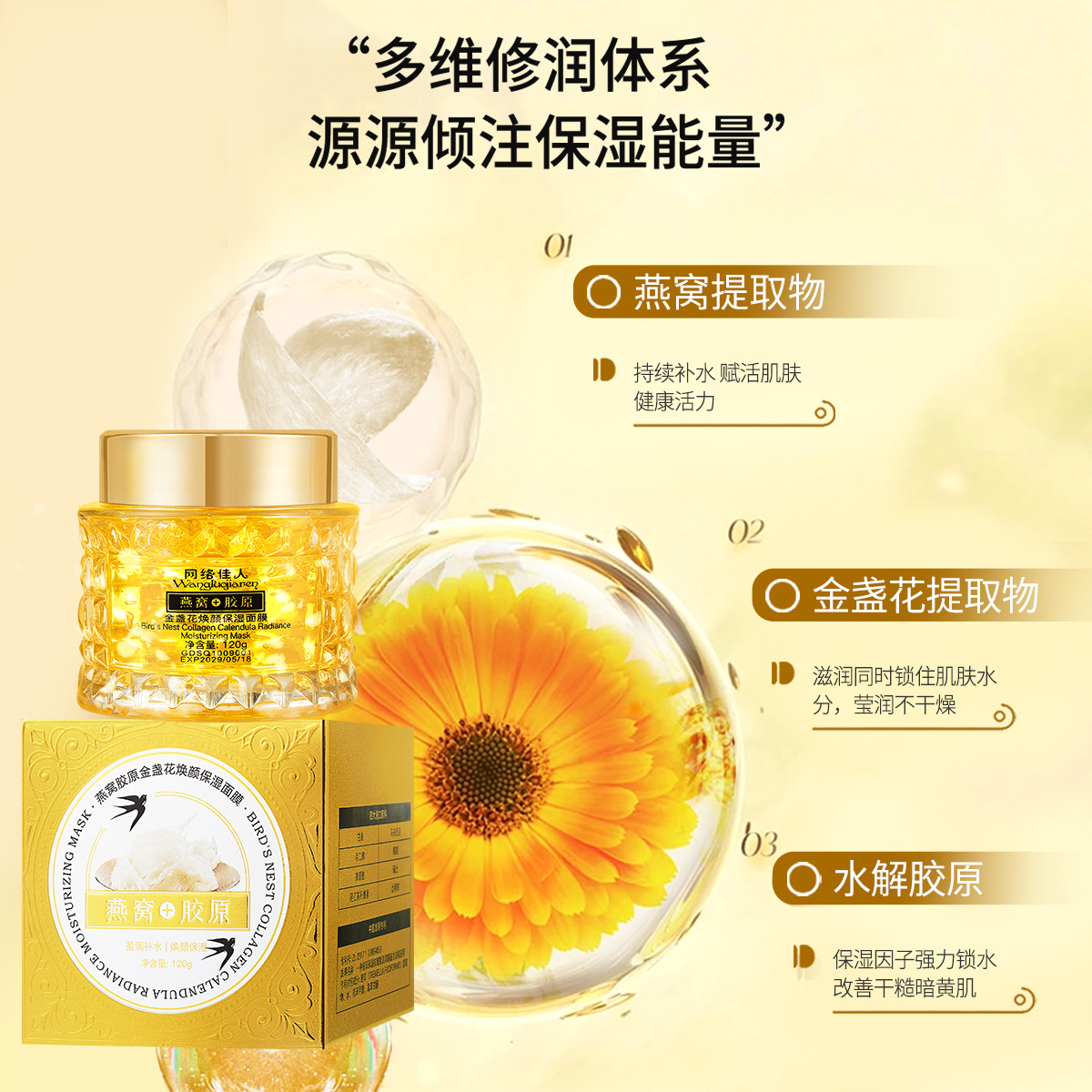 | nameOriginal | Network Beauty Bird's Nest Collagen Calendula Brightening Moisturizing Mask Hydrating Sleep Wash-free Frozen Mask Skin Care Wholesale |