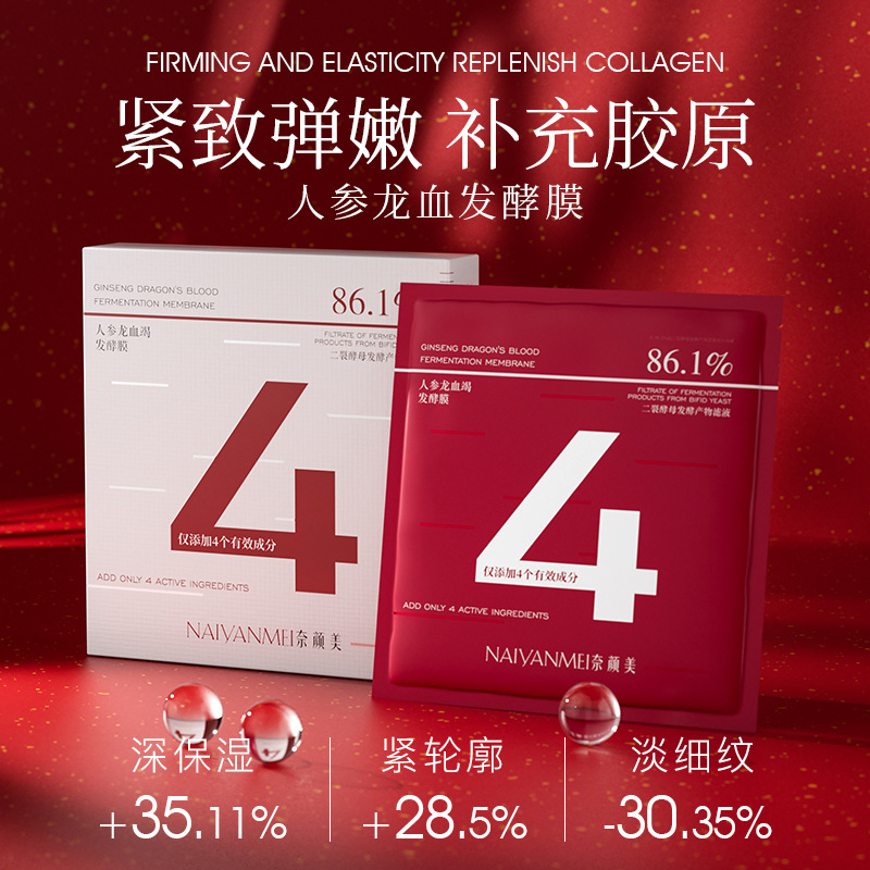 | nameOriginal | Nai Yan Mei Ginseng Dragon Blood Fermentation Film Hydrating Moisturizing Mask Tightening Skin Patch Mask Hydrating Hair |