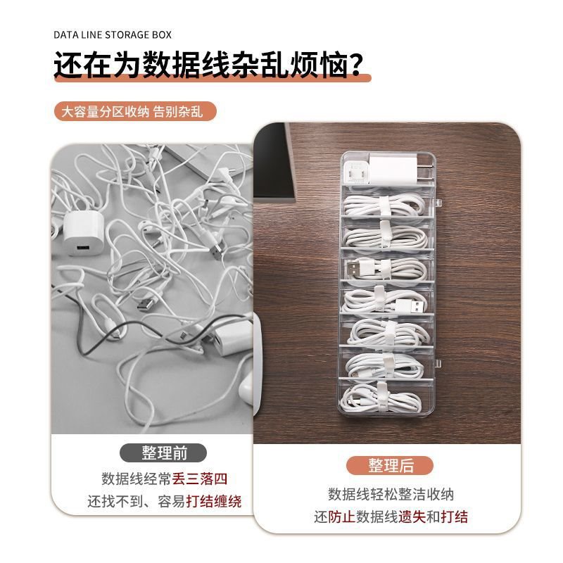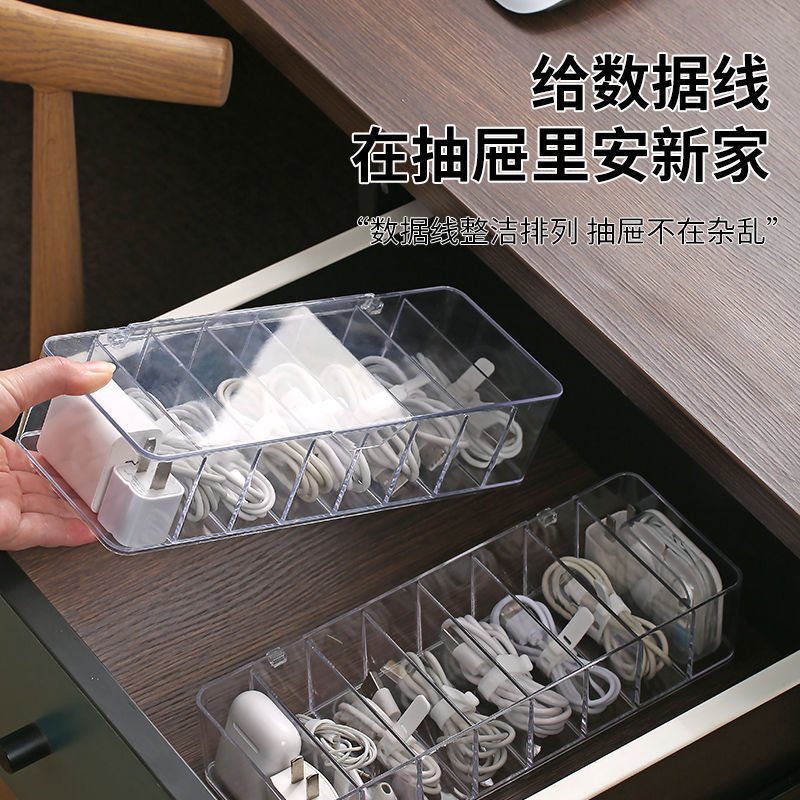 | nameOriginal | Storage box data cable storage mobile phone charging line charger grid finishing desktop transparent winder independent station |