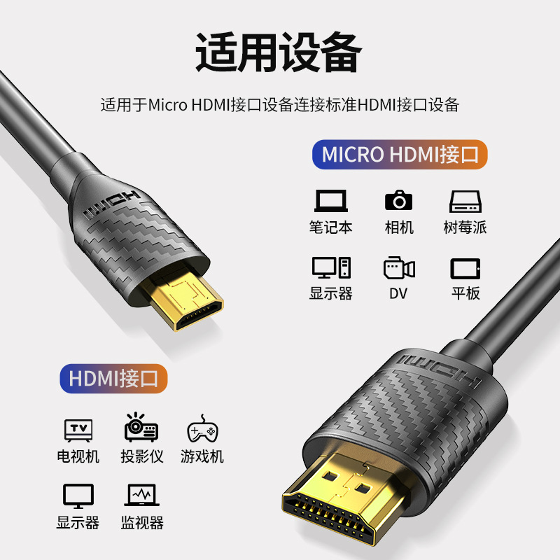 | nameOriginal | Factory spot microhdmi to hdmi cable 2.0 version 4K portable screen camera computer hdmi HD cable |