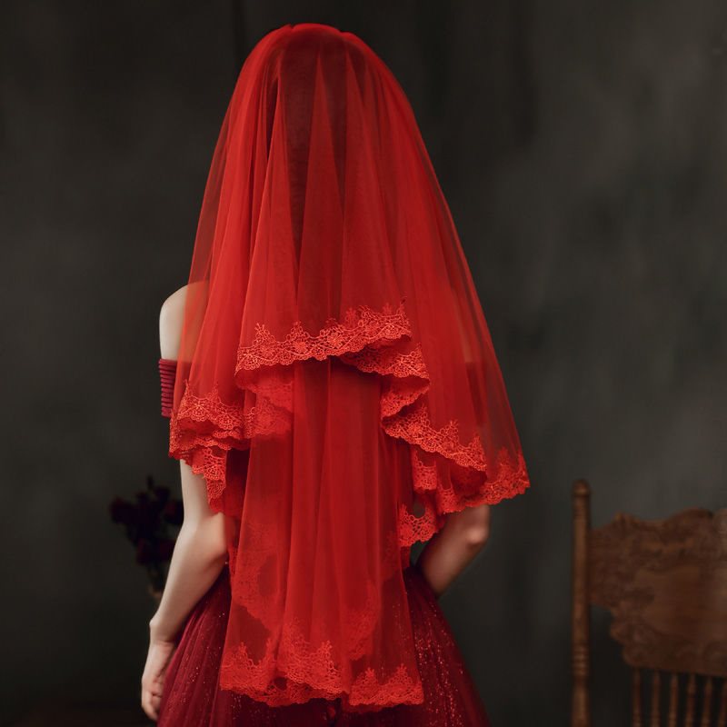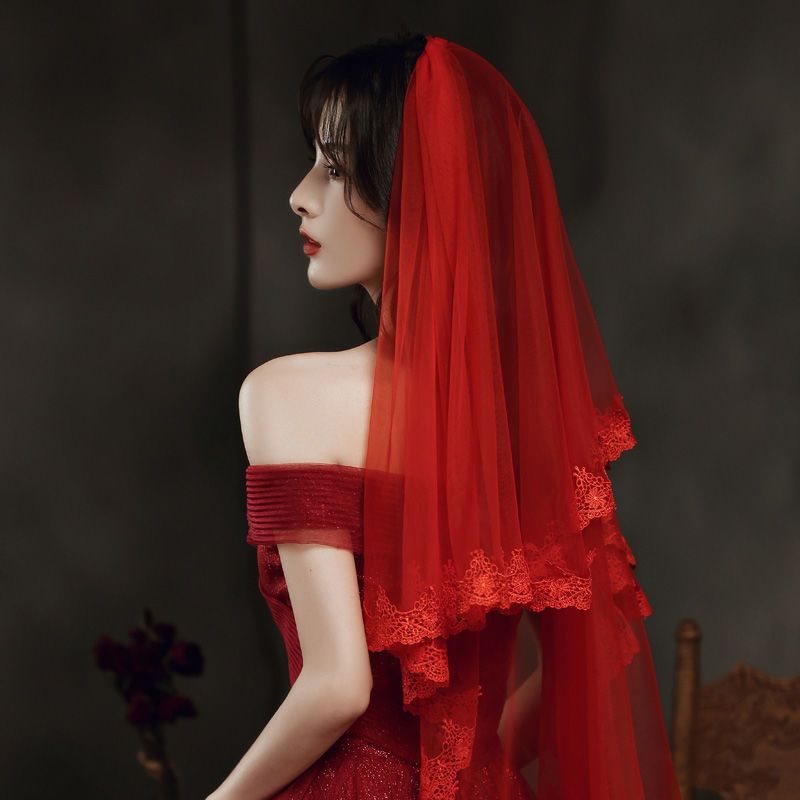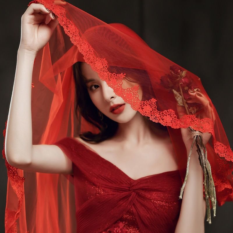 | nameOriginal | Red Veil Bride Wedding Dress Headdress Xiuhe Dress Cheongsam Short Lace Super Fairy License Photo |