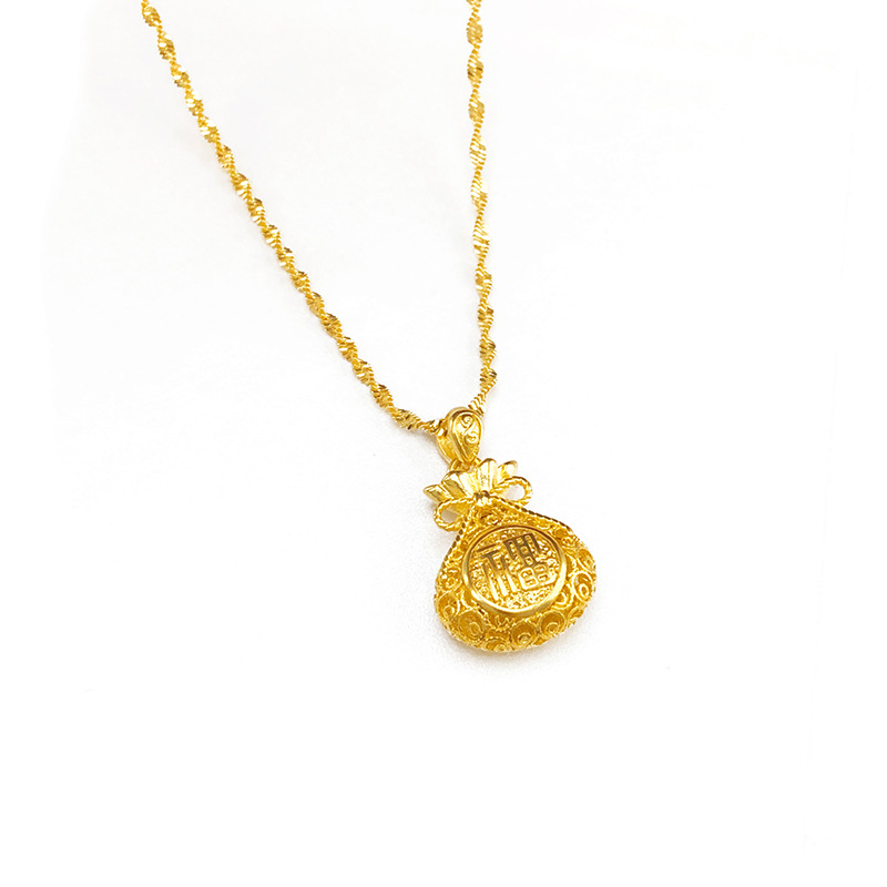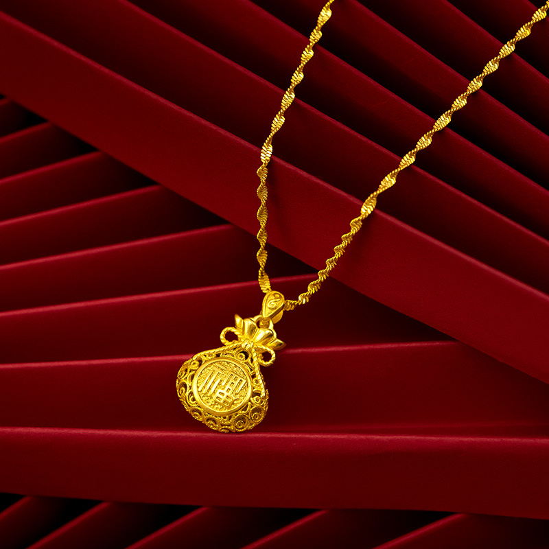 | nameOriginal | Gold version vintage hollow silk Lucky Bag pendant sand gold pure copper gold plated silk Lucky Bag women's clavicle necklace |