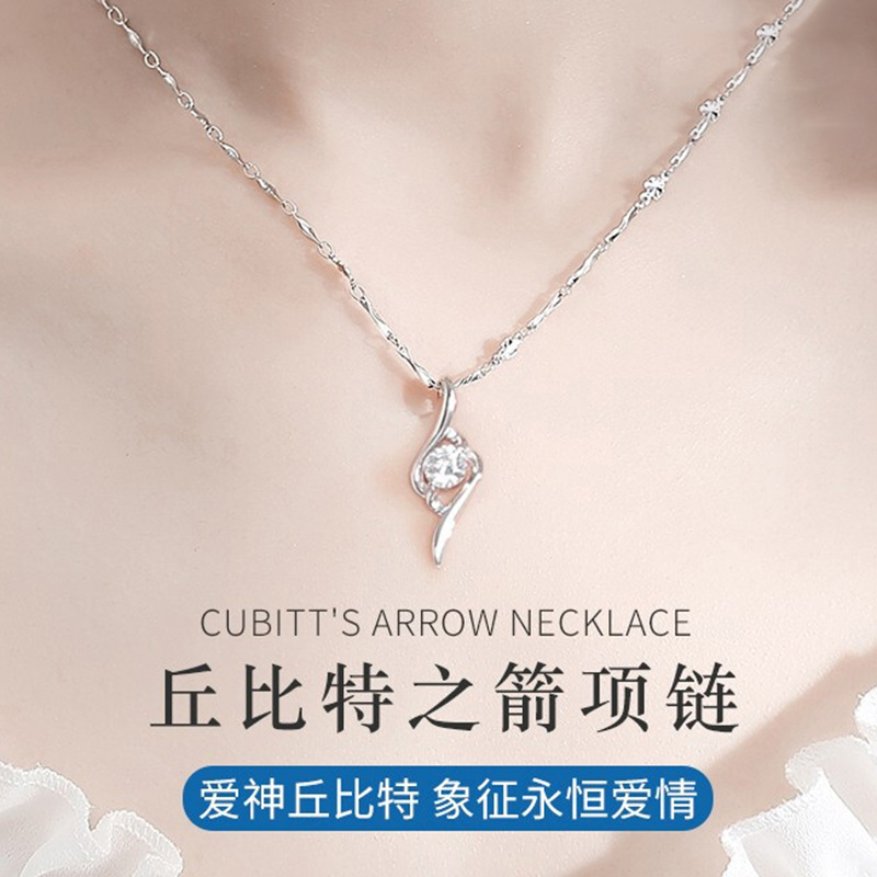 Cupid's Arrow Necklace Women's s999 Silver Pendant Collarbone Chain for Girlfriend Birthday Gift Valentine's Day Gift
