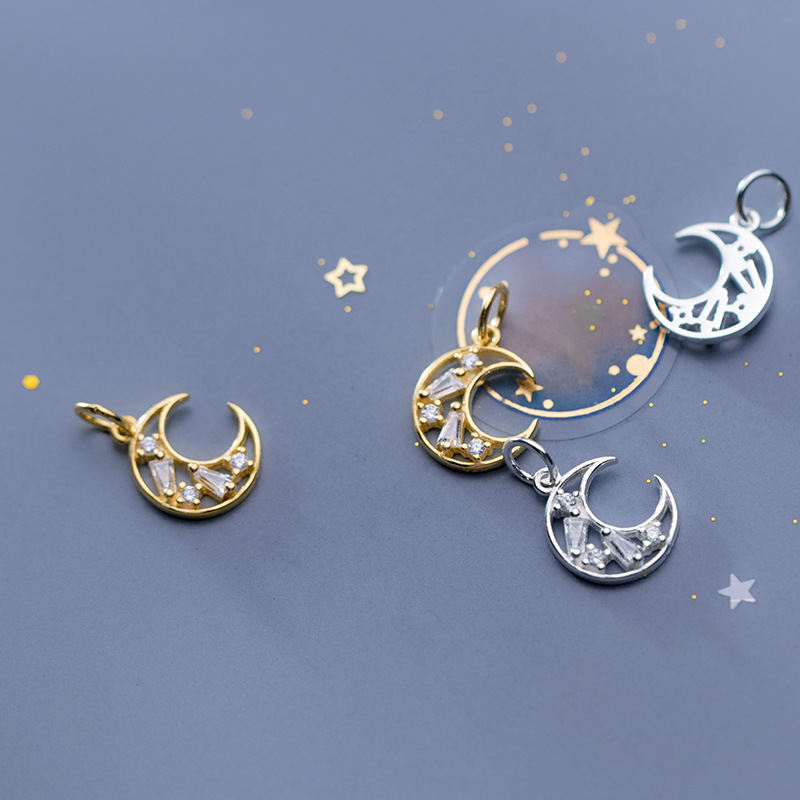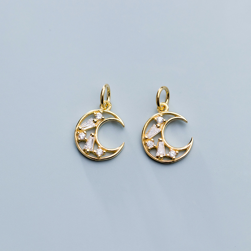 | nameOriginal | 925 silver gold-plated inlaid zircon hollow moon pendant bracelet pendant handmade DIY jewelry accessories wholesale Q0246 |