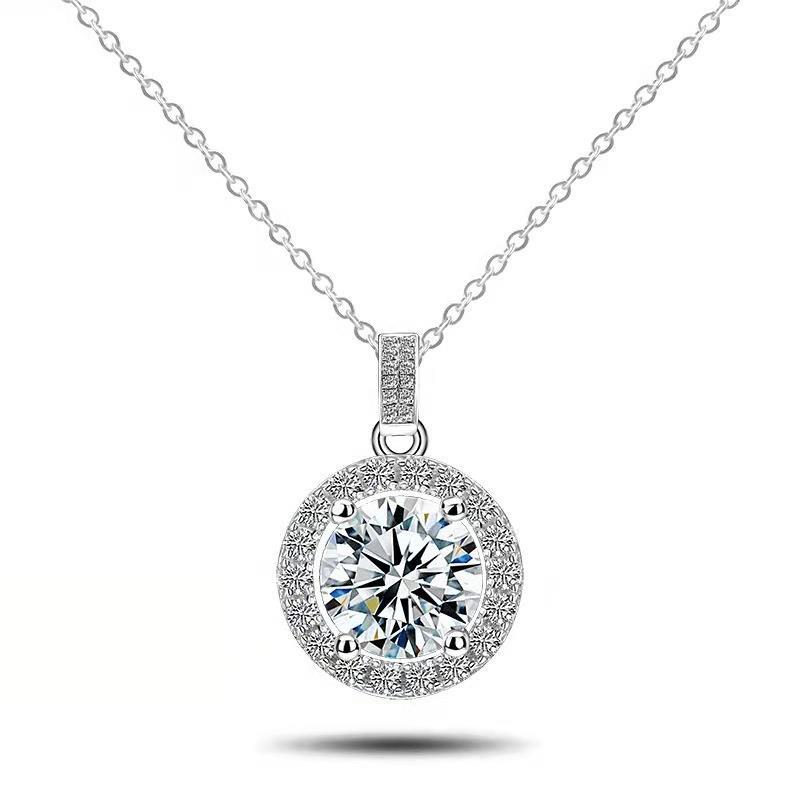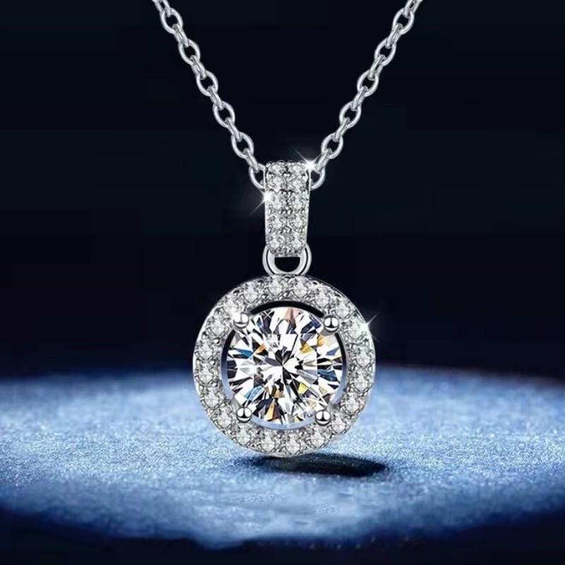 Live supply 5 karat imitation Mosan diamond pendant women's eight hearts eight arrows round bag pendant clavicle chain jewelry