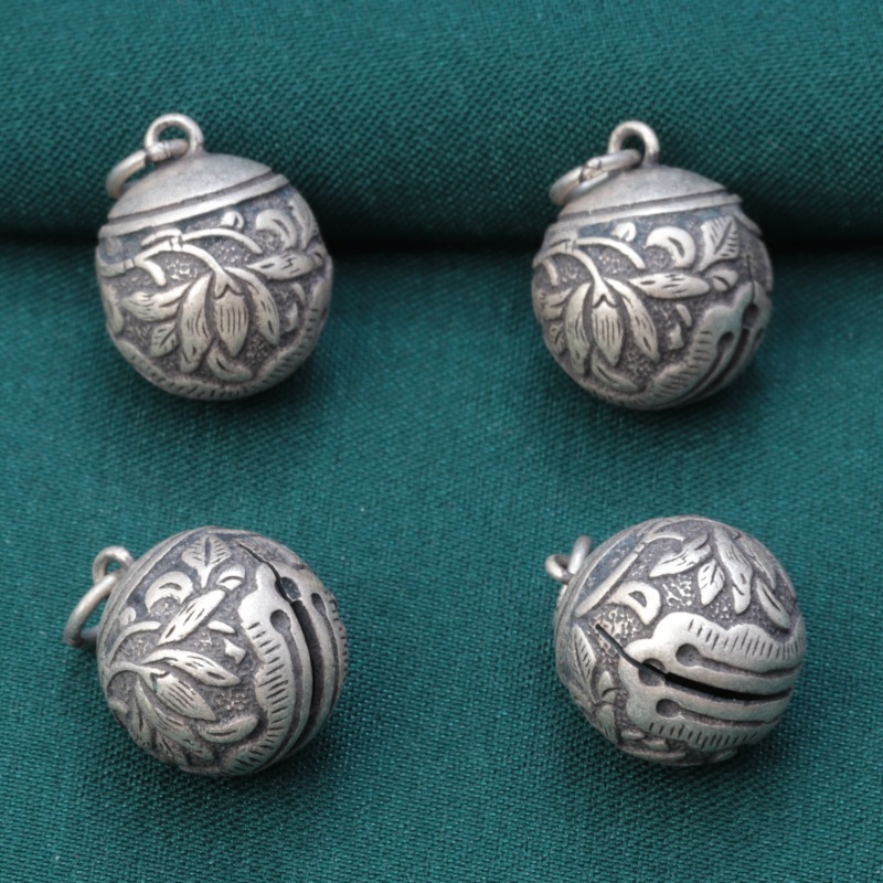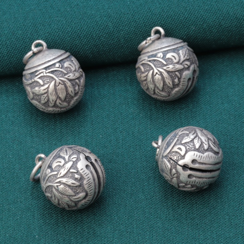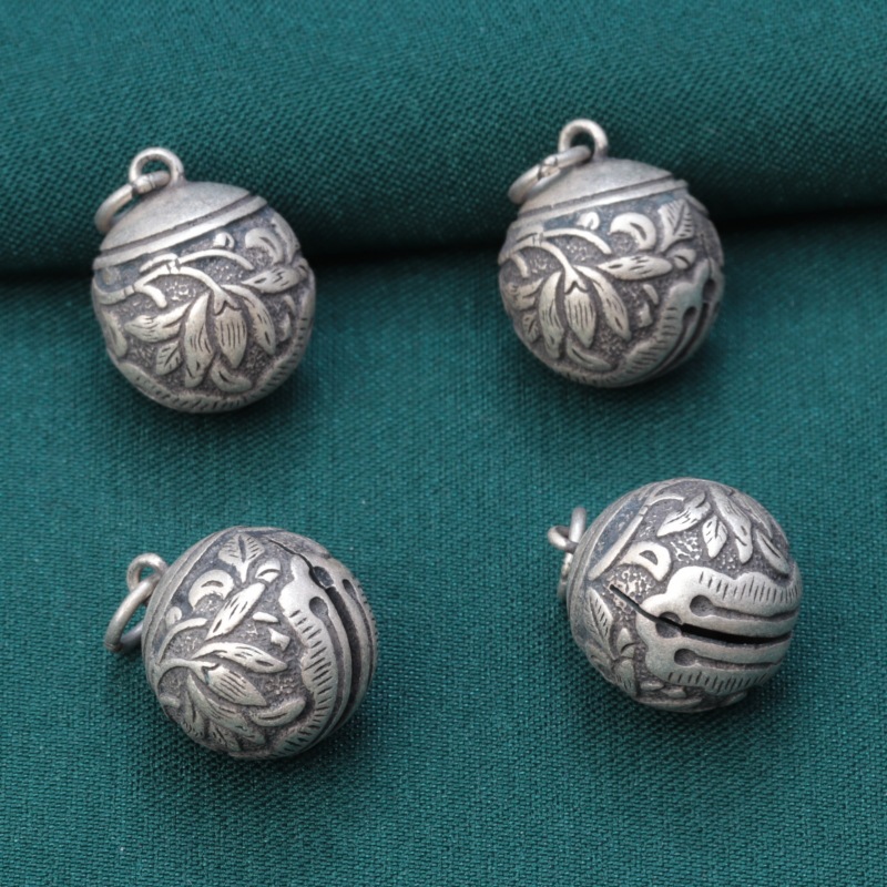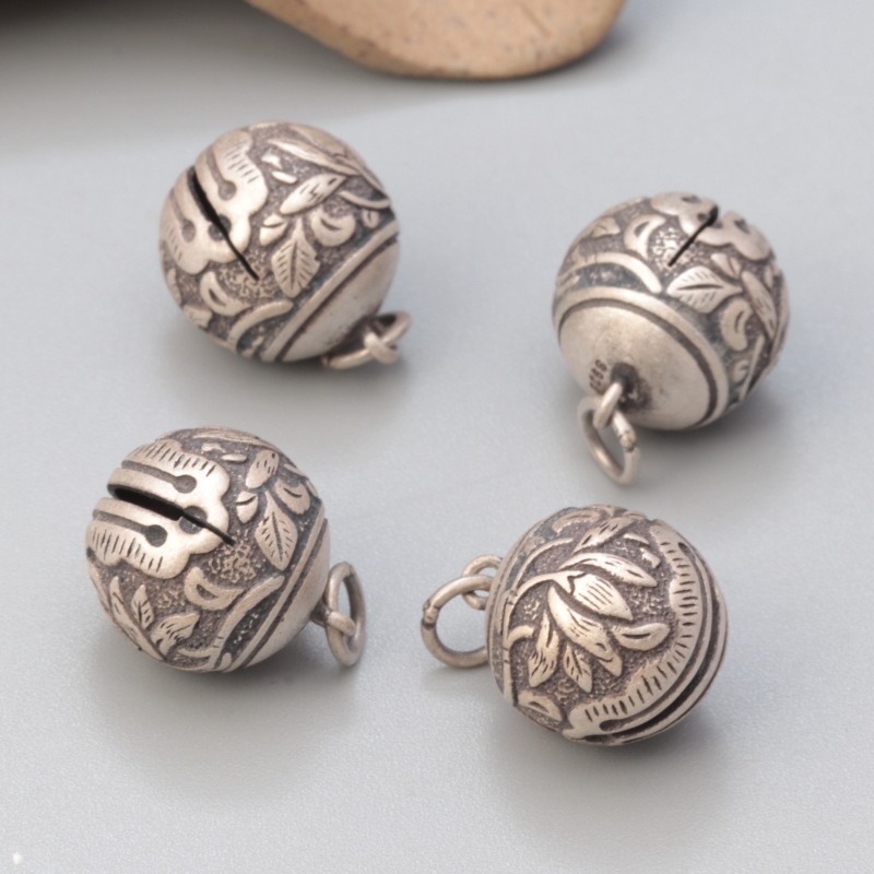 | nameOriginal | S925 sterling silver ink black small flower Bell pendant vintage distressed ball DIY handmade beaded material jewelry |