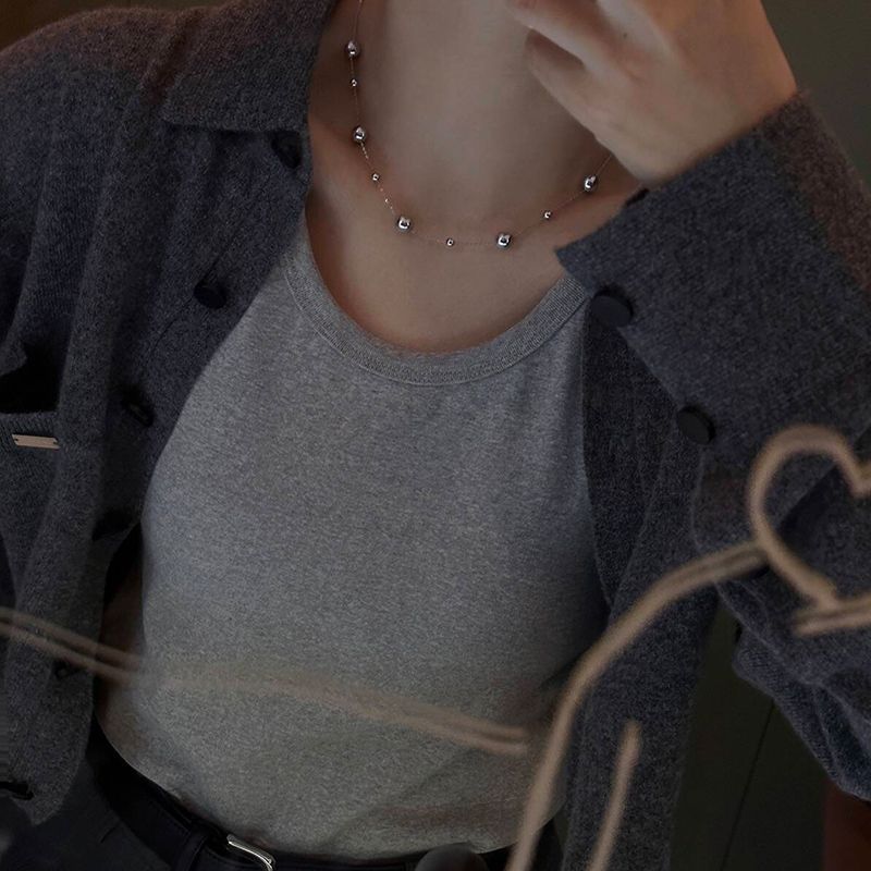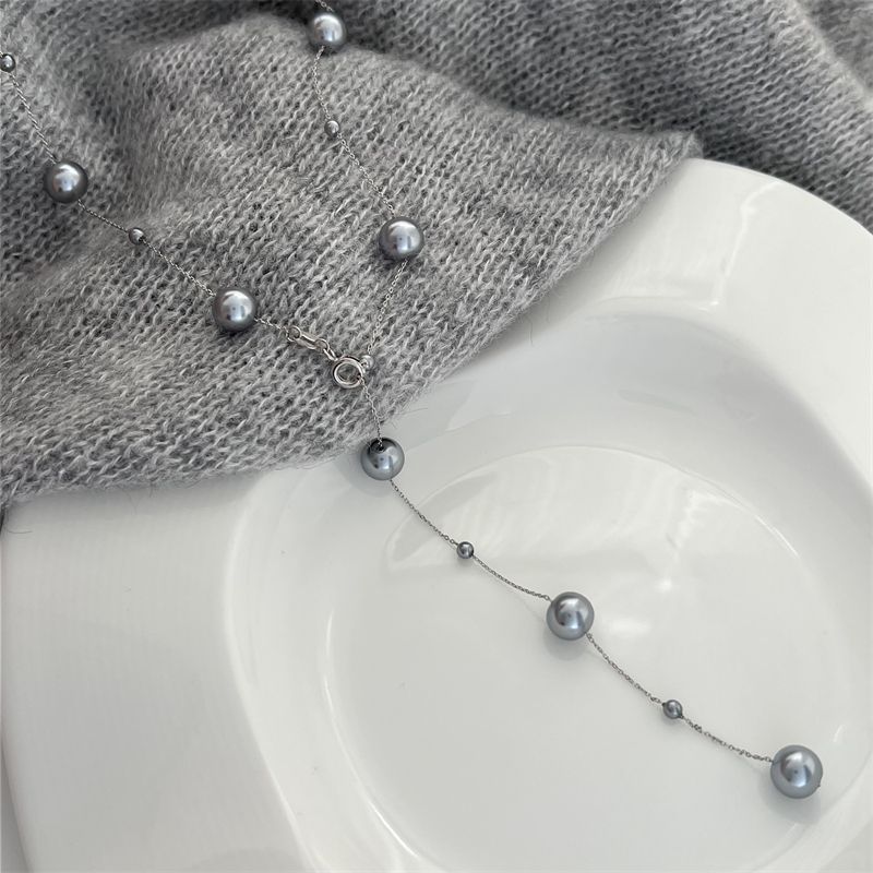 | nameOriginal | Shi Jia Zhen Duo Hemp Gray Gympani Pearl Necklace Light Luxury Niche y-shaped Necklace Clavicle Chain Simple |