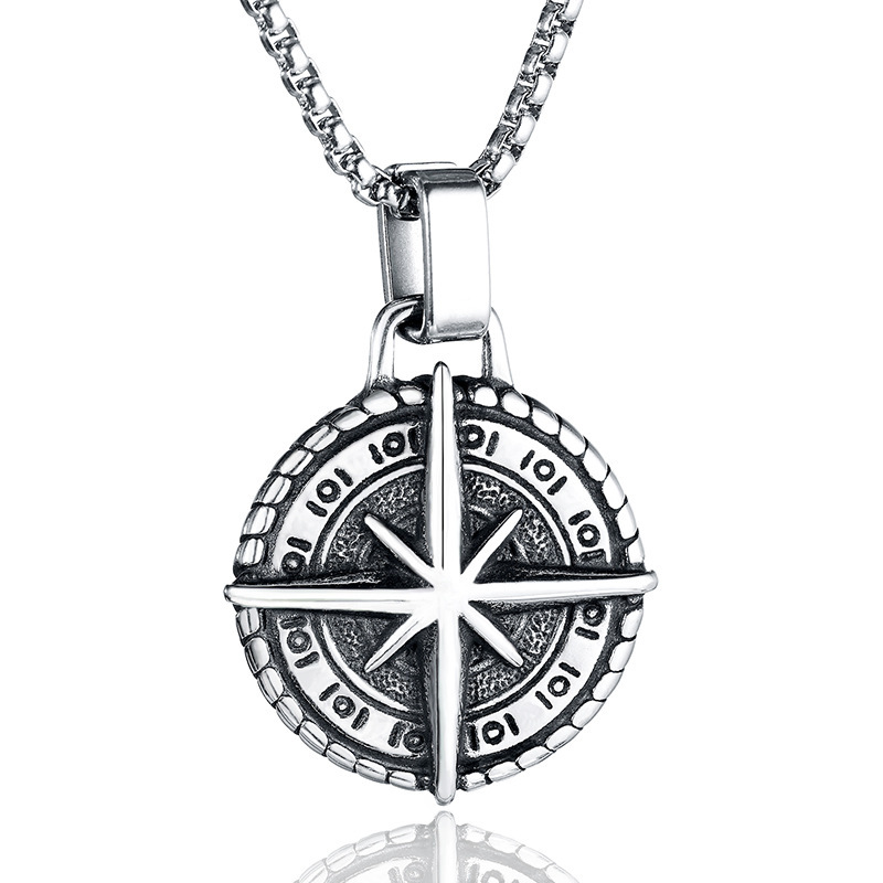 | nameOriginal | European and American titanium steel compass pendant retro punk men's stainless steel compass pendant foreign trade necklace accessories |