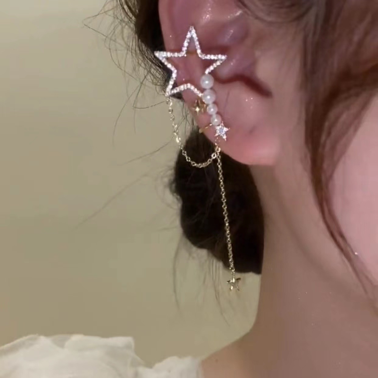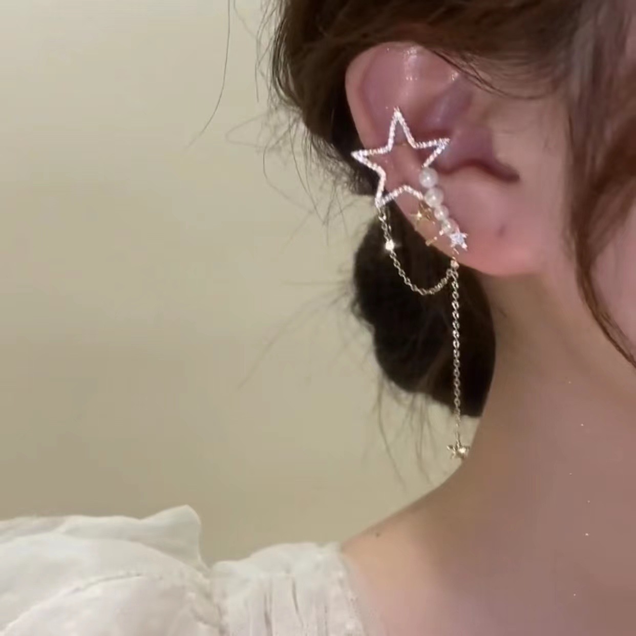 | nameOriginal | TikTok with exquisite pearl five-pointed star tassel ear bone clip without ear hole earrings female niche design high-grade earrings |