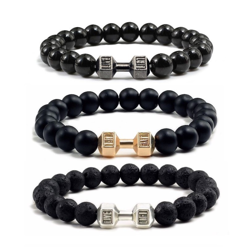 | nameOriginal | European and American fashion jewelry alloy dumbbell natural stone beaded bracelet bracelet turquoise volcanic stone men's elastic bracelet |