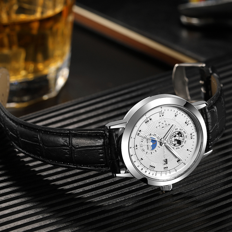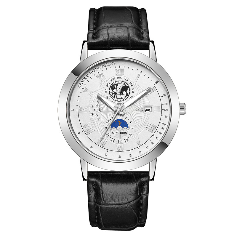 Foreign trade new hot fashion three-eye moon earth calendar men’s watch men’s watch belt quartz watch wholesale
