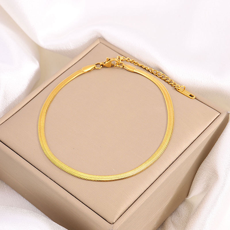 | nameOriginal | Titanium steel anklet girls high sense flat snake non-fading anklet fashion simple non-fading 18k gold-plated anklet |