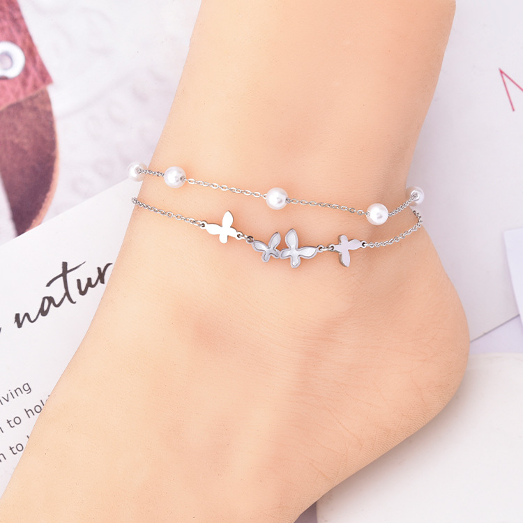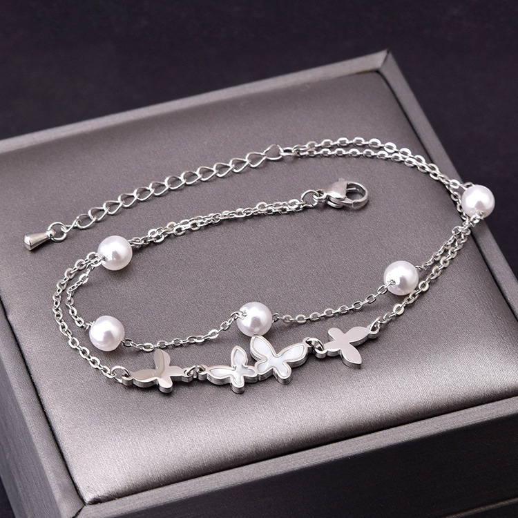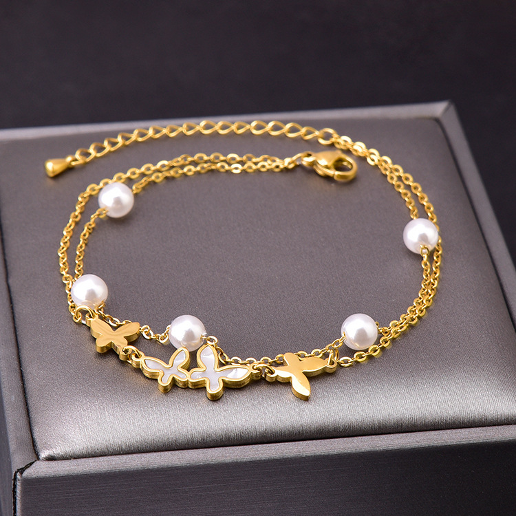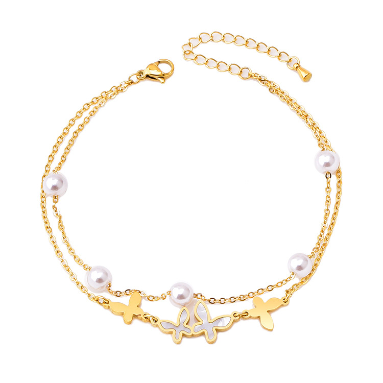 | nameOriginal | Korean style new double-layer anklet pearl shell butterfly titanium steel waterproof sweat-proof girl anklet gold steel color in stock |
