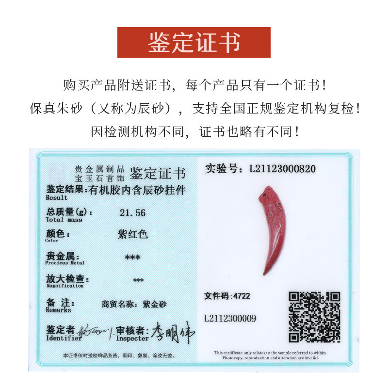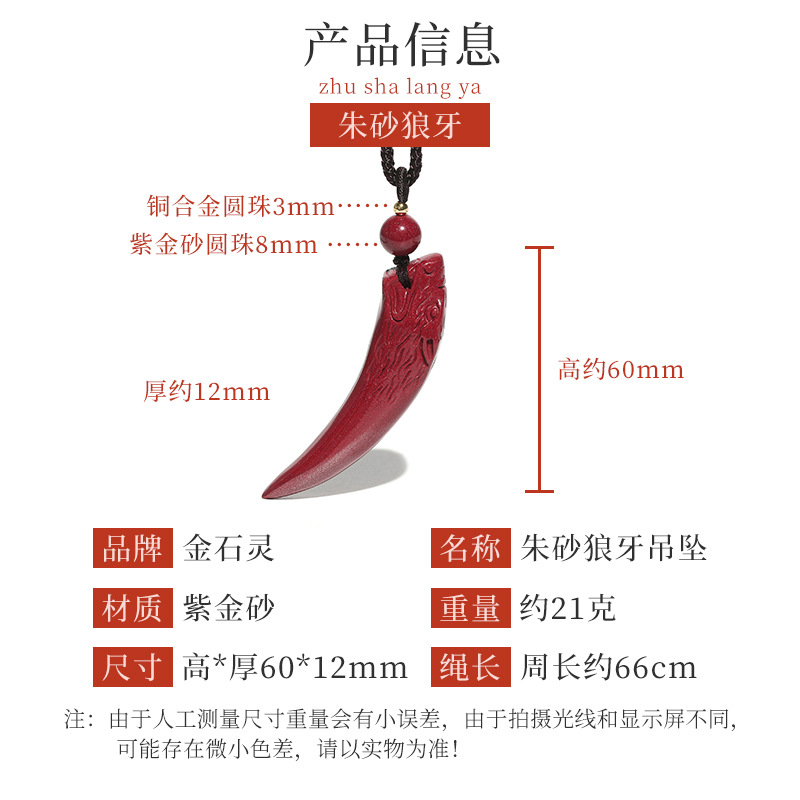 | nameOriginal | Huexin cinnabar pendant men's purple gold sand wolf tooth pendant lucky beads Valentine's Day gift |