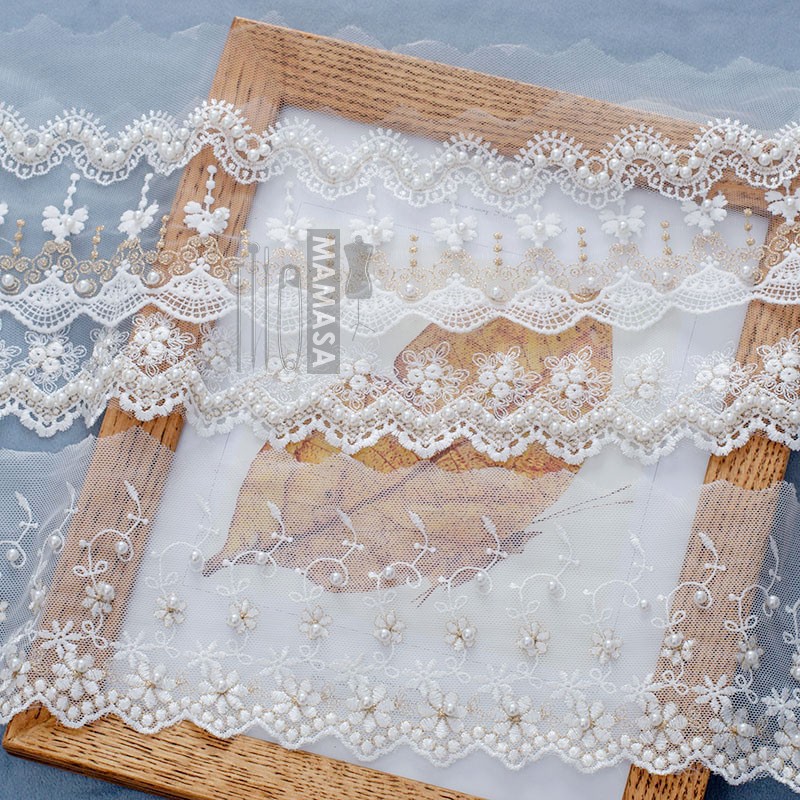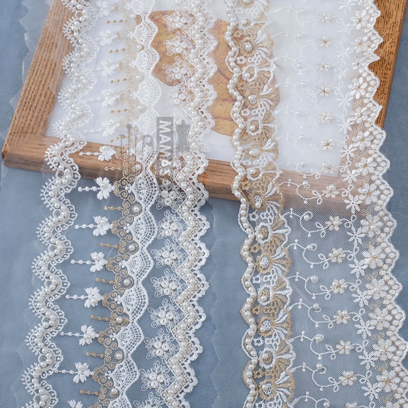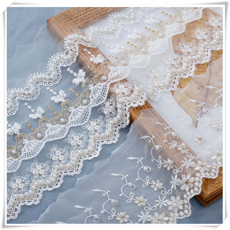 3EW1 handmade beaded two-color gold thread mesh embroidery lace accessories Lolita Pearl clothing fabric