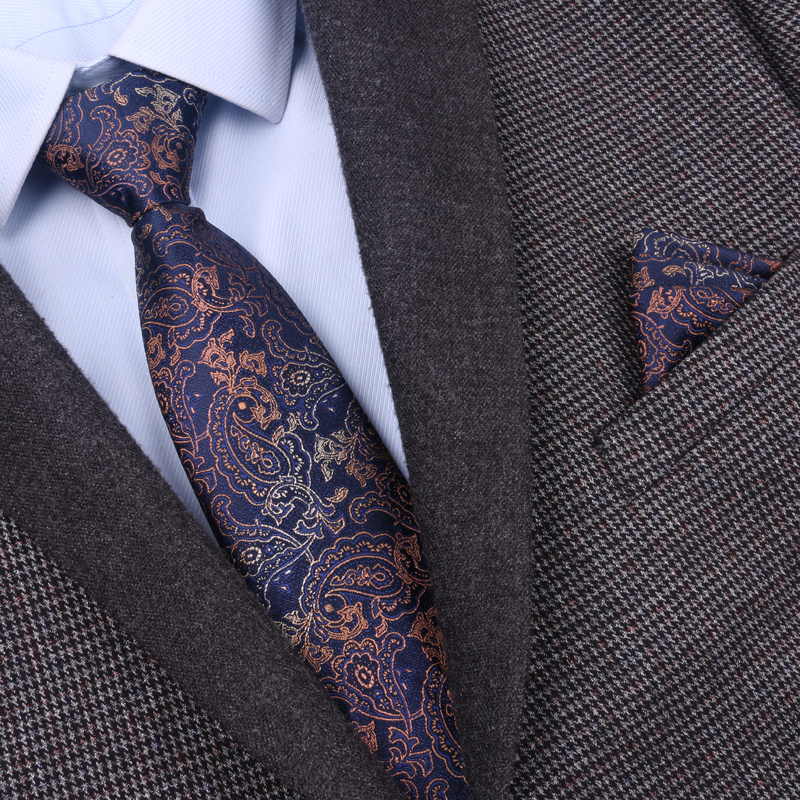 | nameOriginal | Men's Dress Business Tie Professional Suit Shirt 8cm Zipper Viability Pattern Tie Pocket Towel |