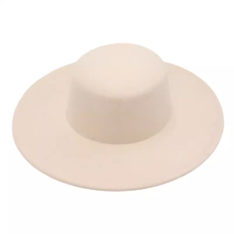 Cross-border special for autumn and winter flat top woolen hat big brim all-match felt hat female jazz hat French Hepburn style