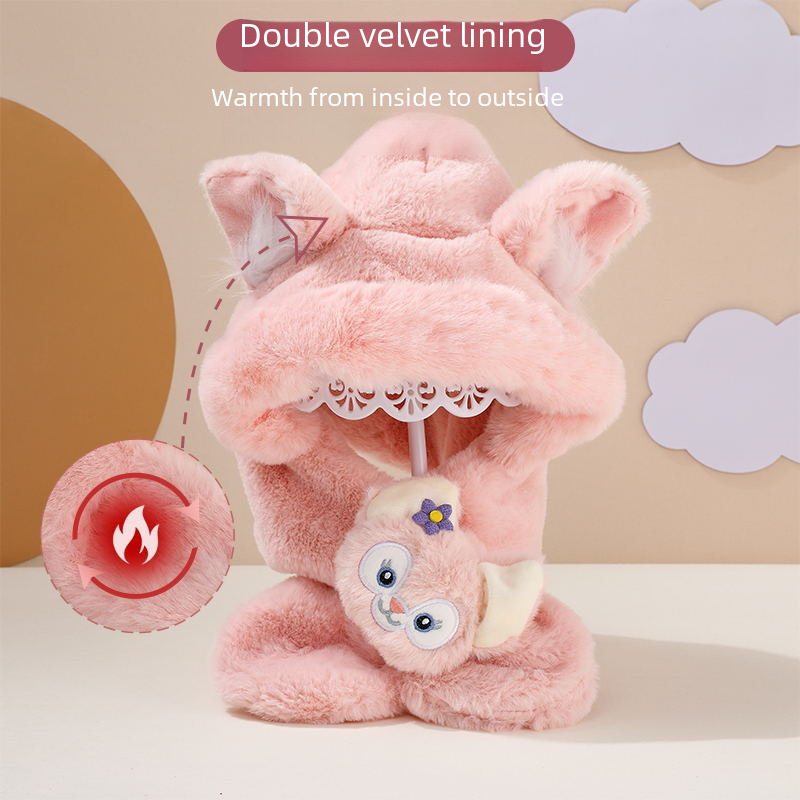 | nameOriginal | Star Dailu Children's Hat Scarf One Cute Cartoon Plush Thickened Windproof Baby Hat Autumn and Winter Girls |