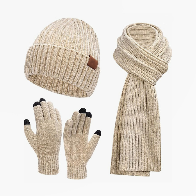 | nameOriginal | Cross-border e-commerce Amazon 6-color in stock men's adult fleece-lined touch screen scarf hat gloves 3 3-piece set |