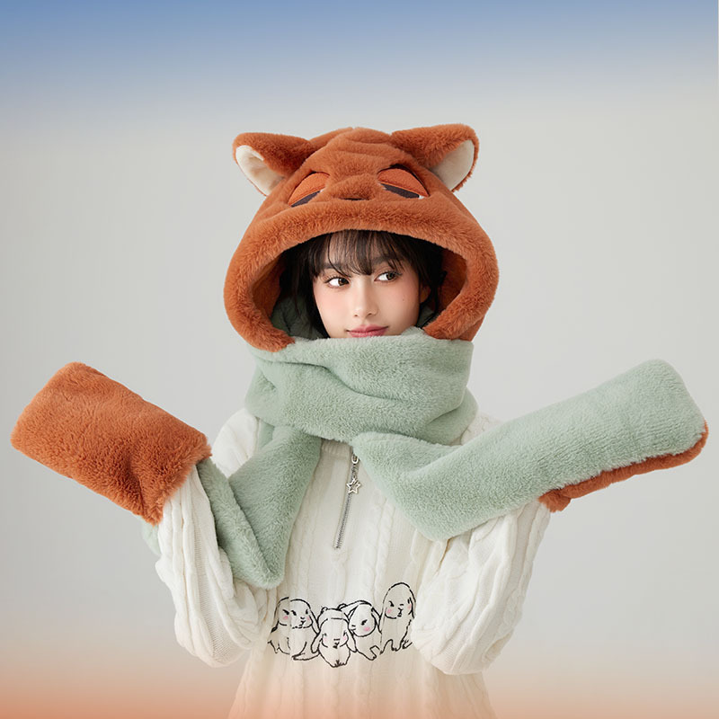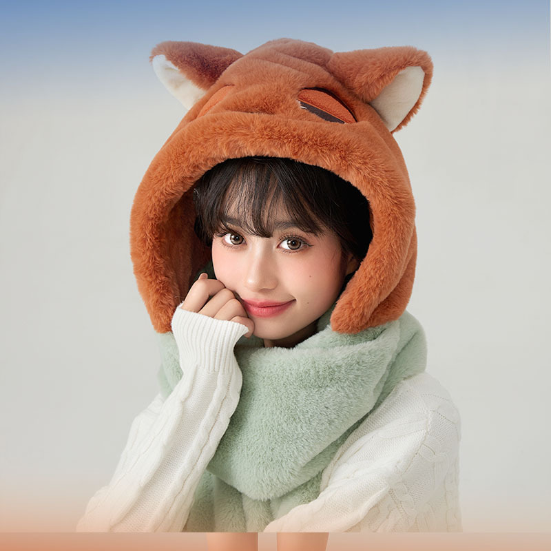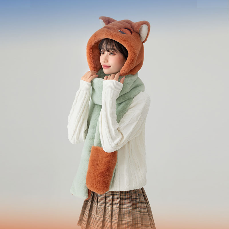 | nameOriginal | Hat Autumn and Winter Women's Three-piece Set Plush Hooded Scarf One-piece Nick Cartoon Warm Belt Gloves Ear Protection Scarf |