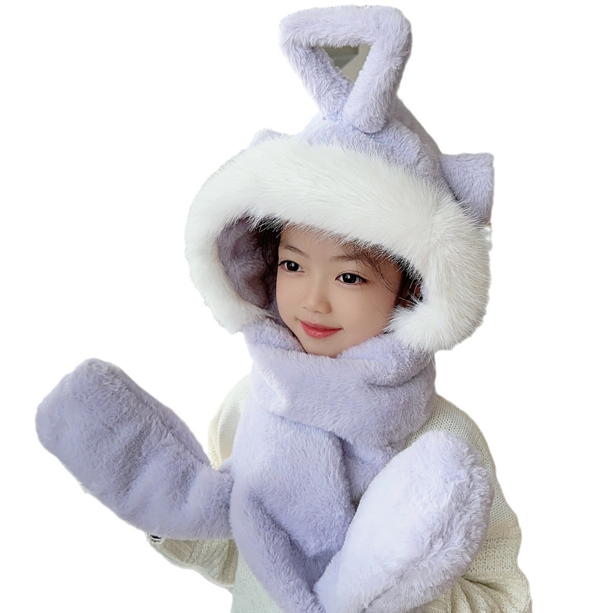 New antenna cartoon baby hat gloves scarf integrated plush children cute warm all-match three-piece Winter