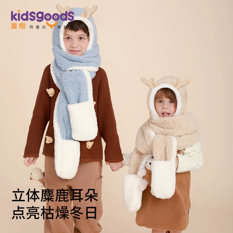 | nameOriginal | Winter plush children's hat scarf gloves one three-piece set of cold warm cute baby Christmas hat wholesale |