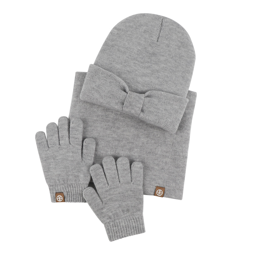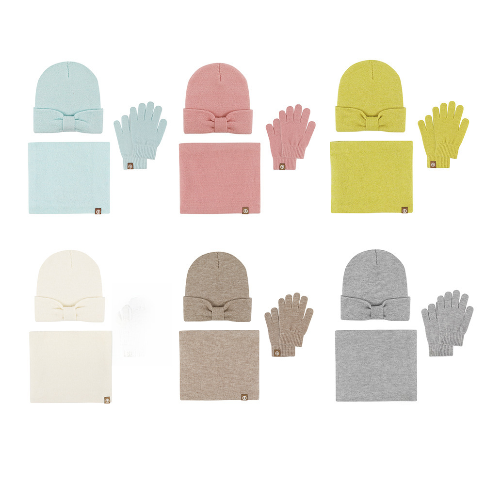 | nameOriginal | Children's hat three-piece suit autumn and winter warm cute bow baby hat scarf gloves three-piece suit |