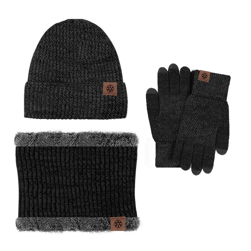 | nameOriginal | Winter fashion knitted warm hat scarf gloves touch screen foreign trade suit chenille outdoor velvet three-piece set |