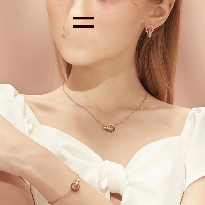 | nameOriginal | Double ring Roman digital inlaid zircon jewelry suit fashion stainless steel bracelet bridal earrings Jewelry necklace three pieces |