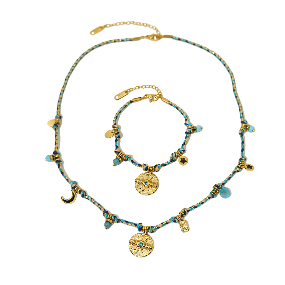 French retro bracelet necklace suit plated 18K gold titanium steel bracelet bohemian woven bracelet female clavicle chain