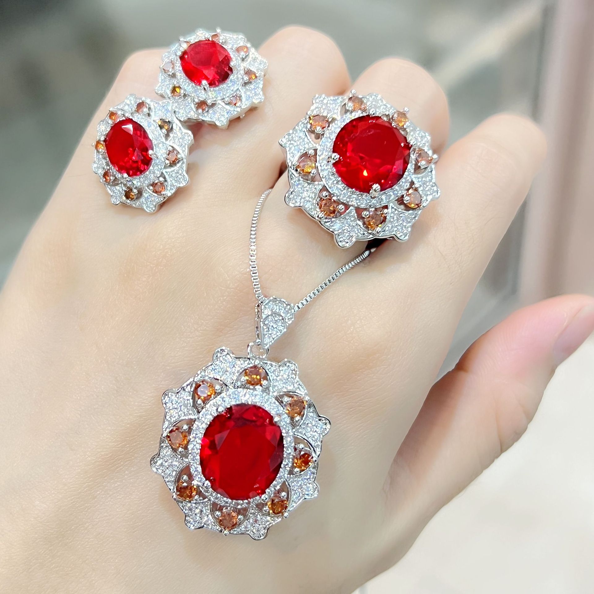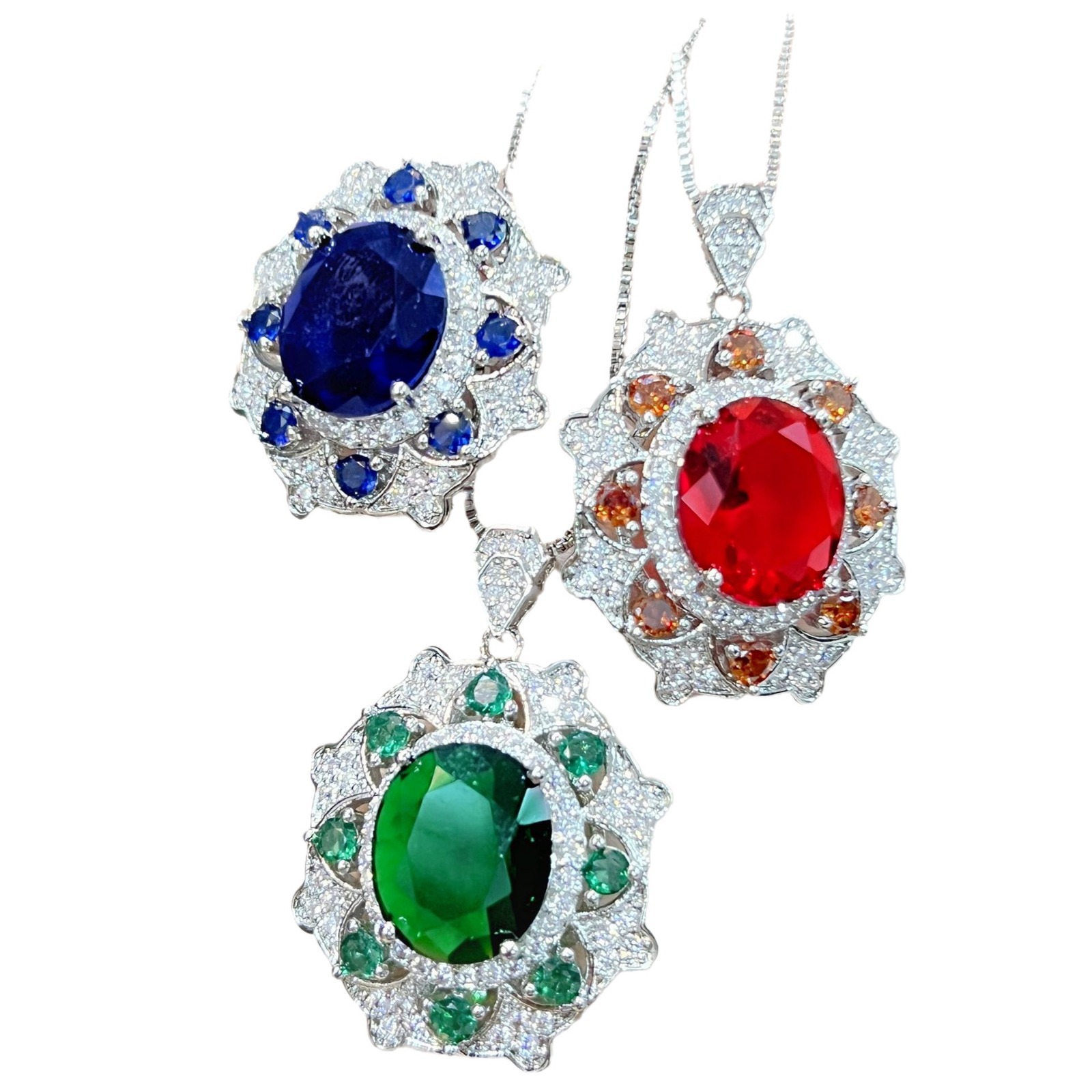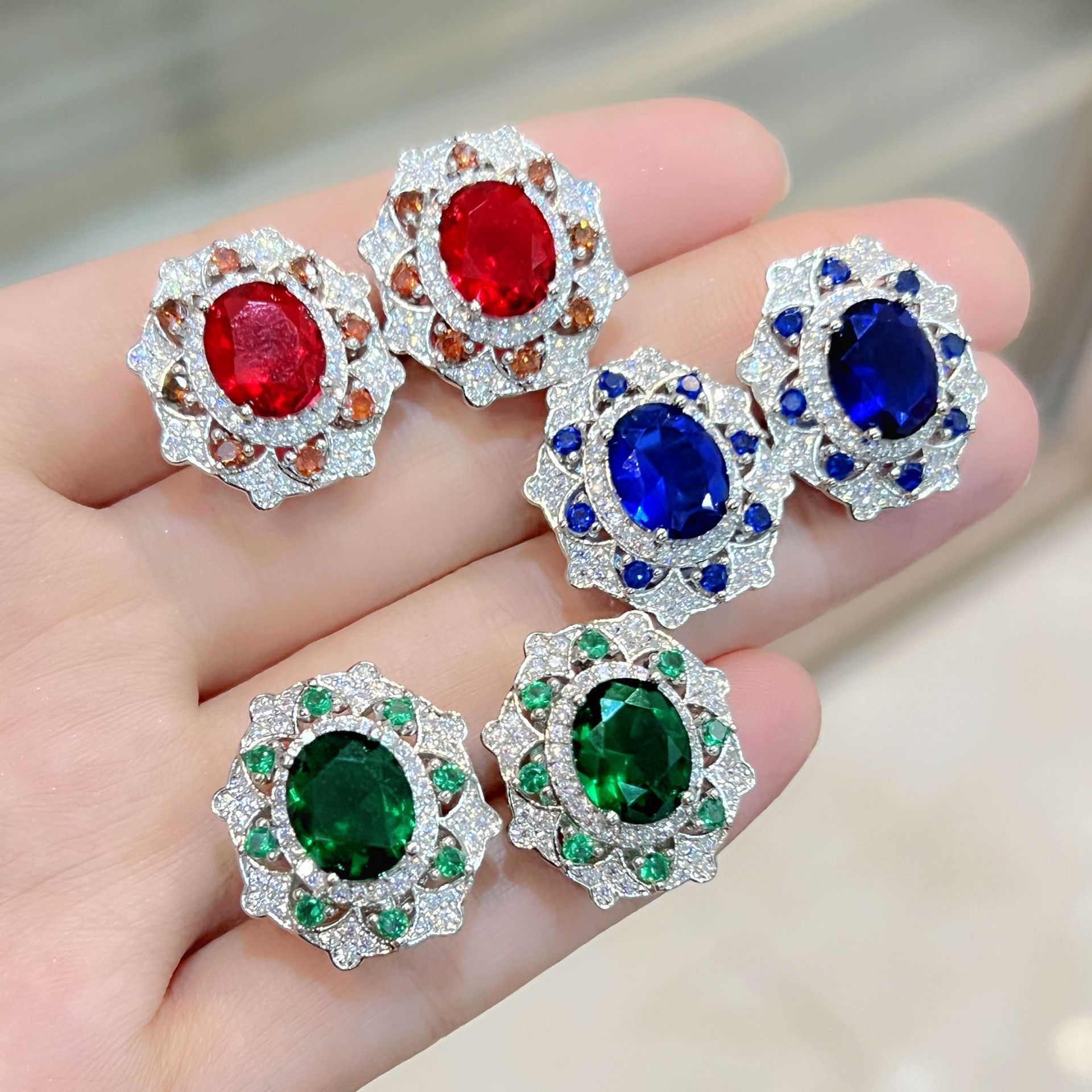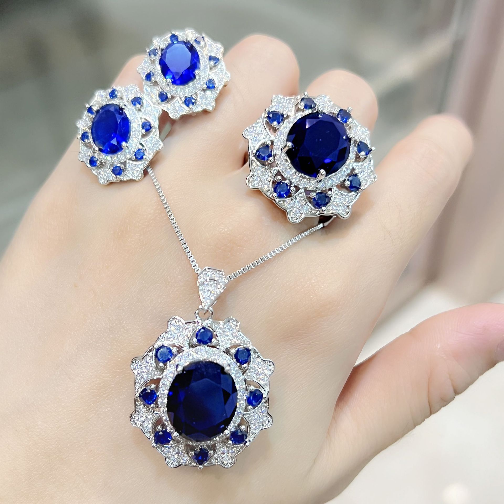 | nameOriginal | Internet celebrity TikTok live broadcast green diamond Red Diamond dark blue diamond ring earrings pendant necklace jewelry suit luxury oval diamond |