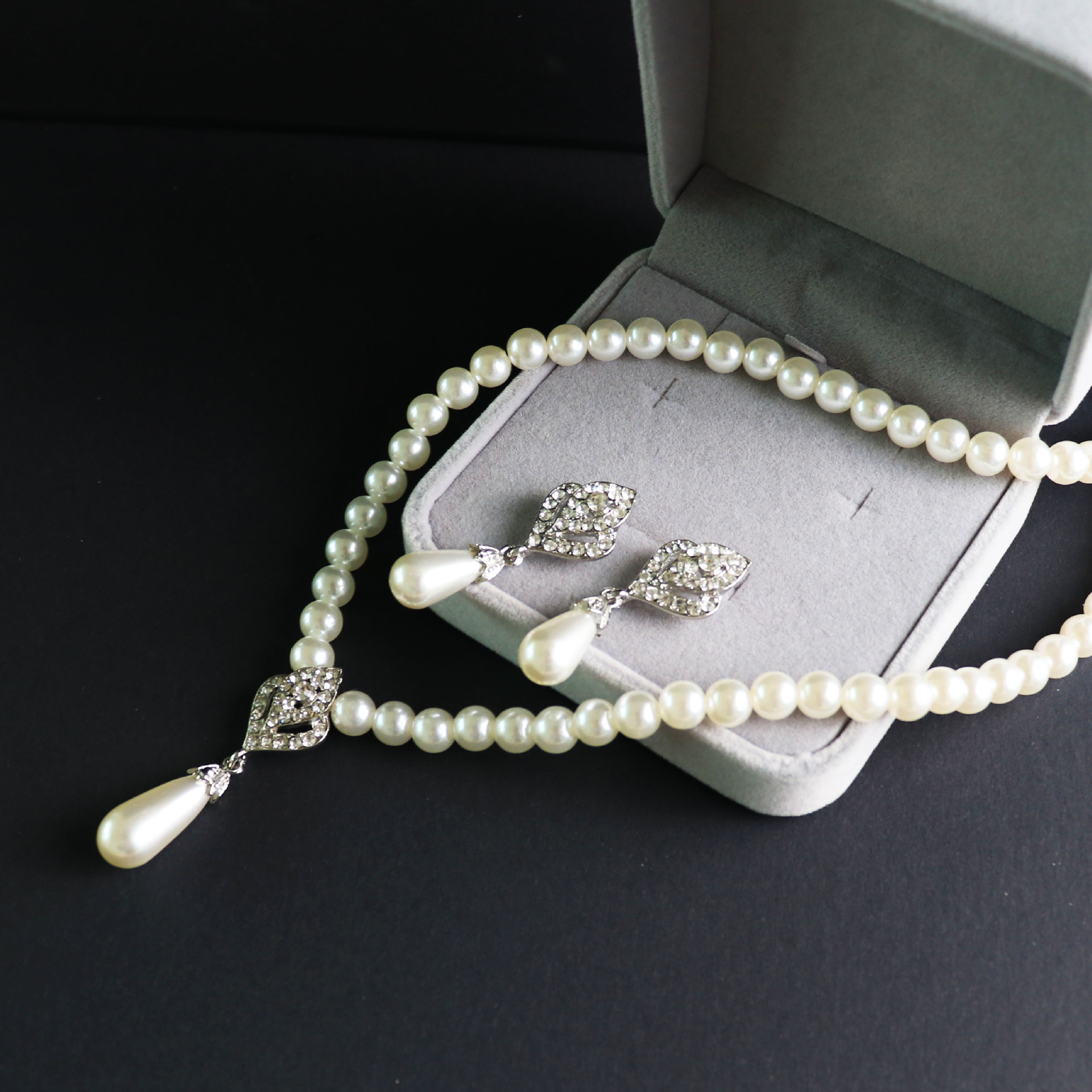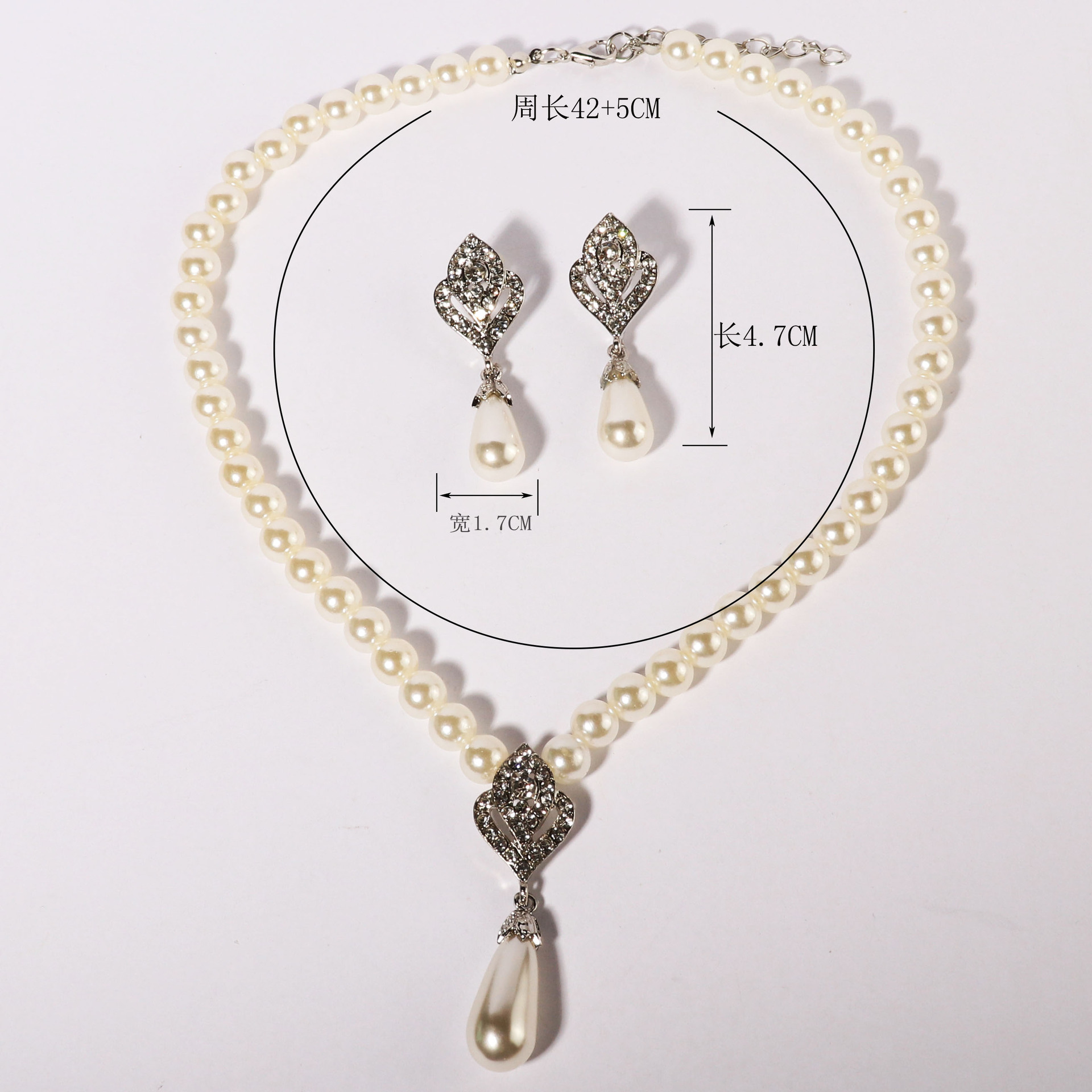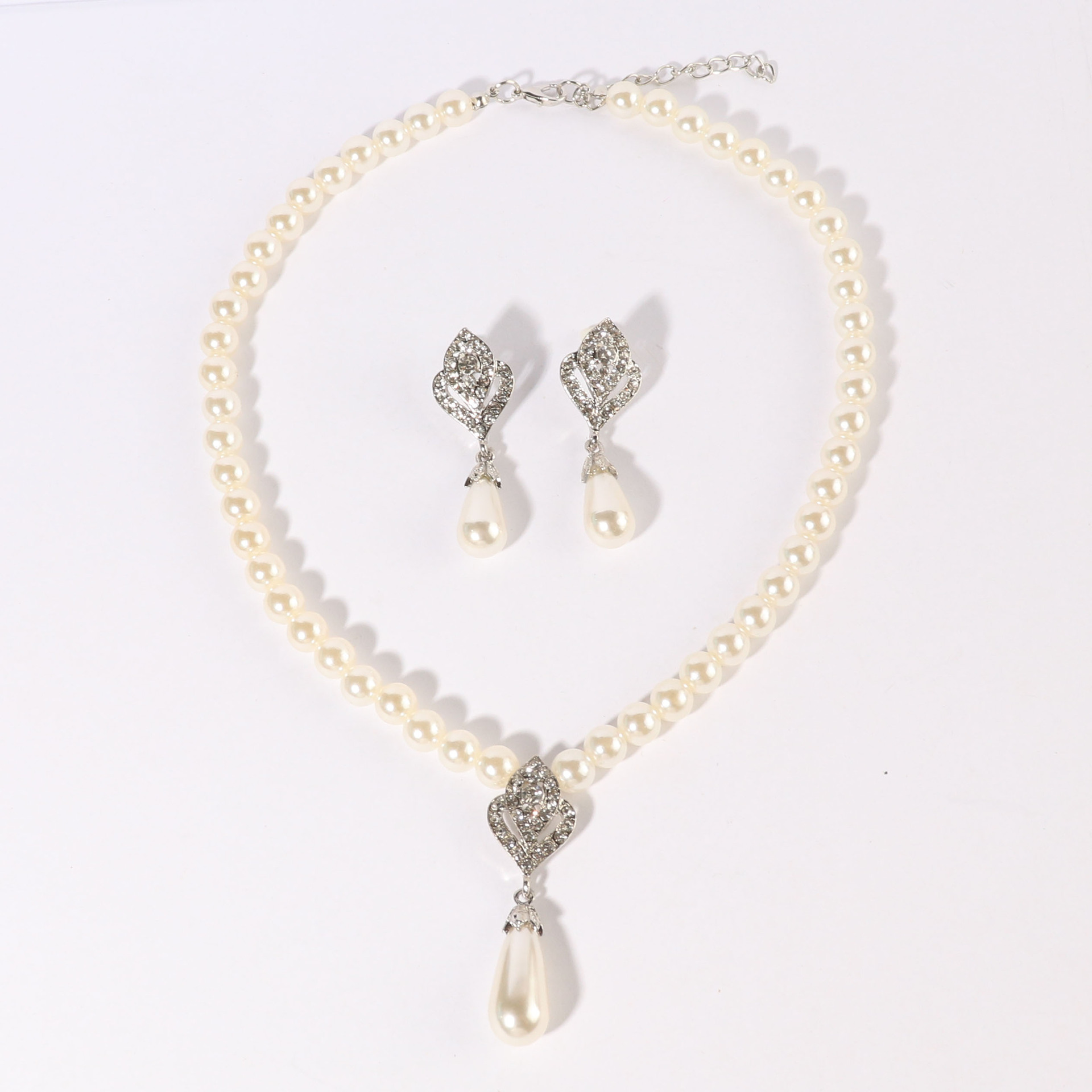 | nameOriginal | European and American Jewelry suit Pearl Earrings Bridal Accessories Rhinestone Necklace Wholesale Fashion Wide 2 Piece Set in stock Alloy |