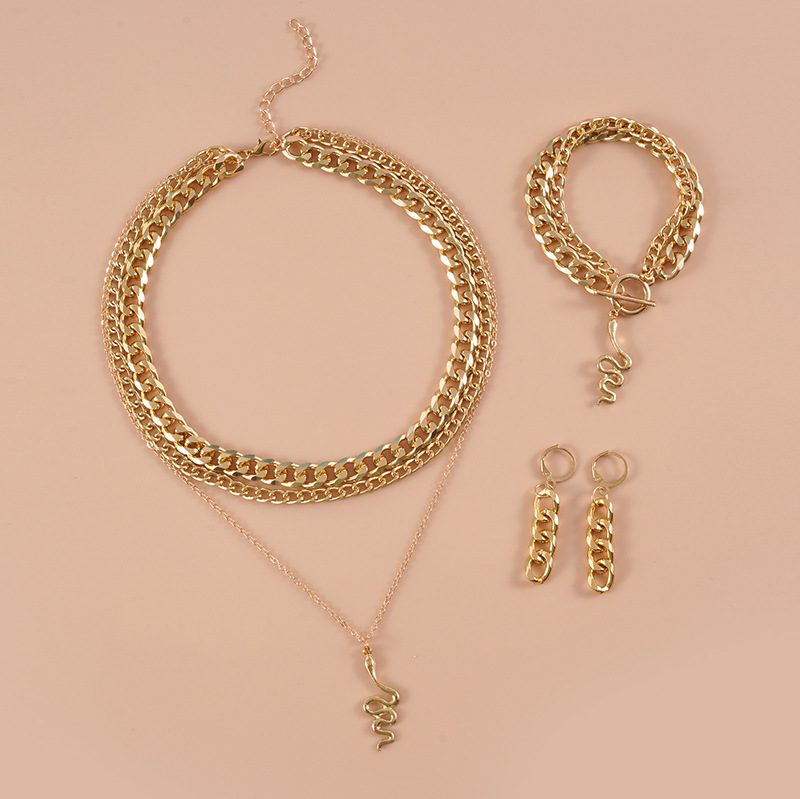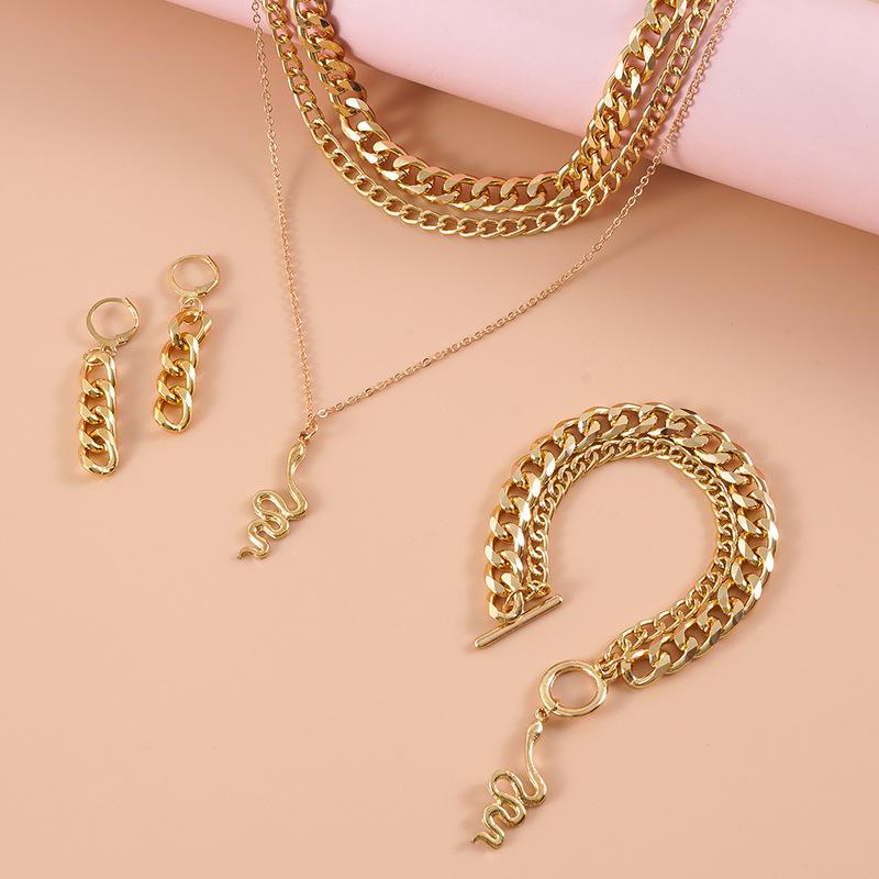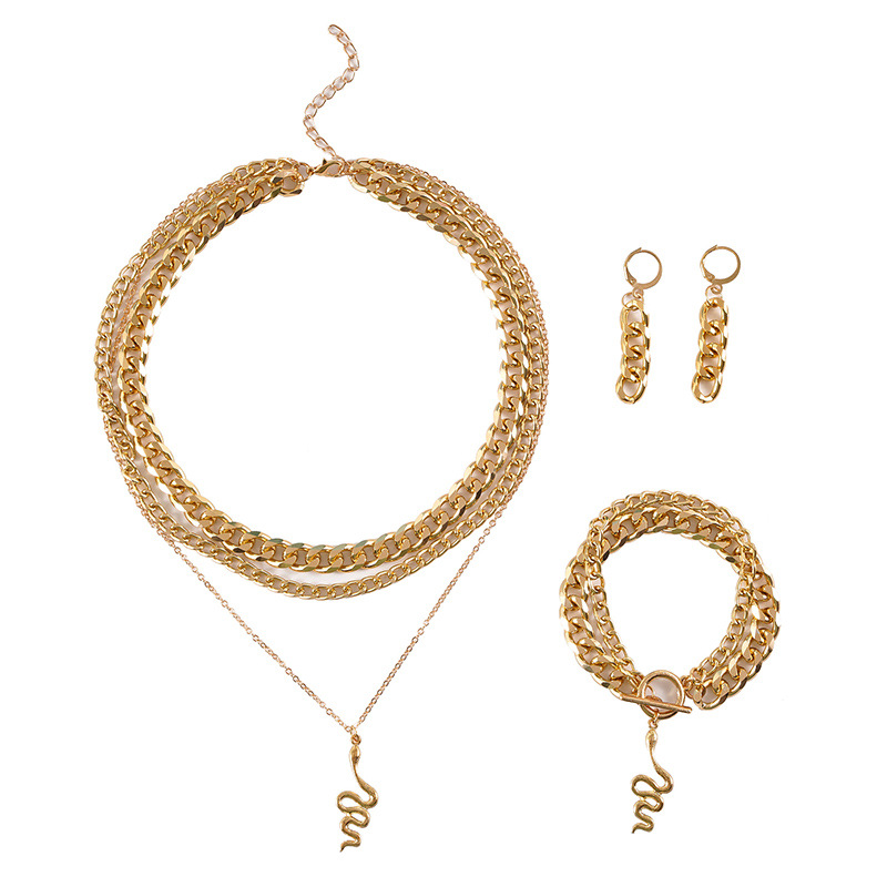 | nameOriginal | Europe and the United States cross-border hot selling personality exaggerated gold thick and thin chain snake pendant multi-layer necklace jewelry suit women |