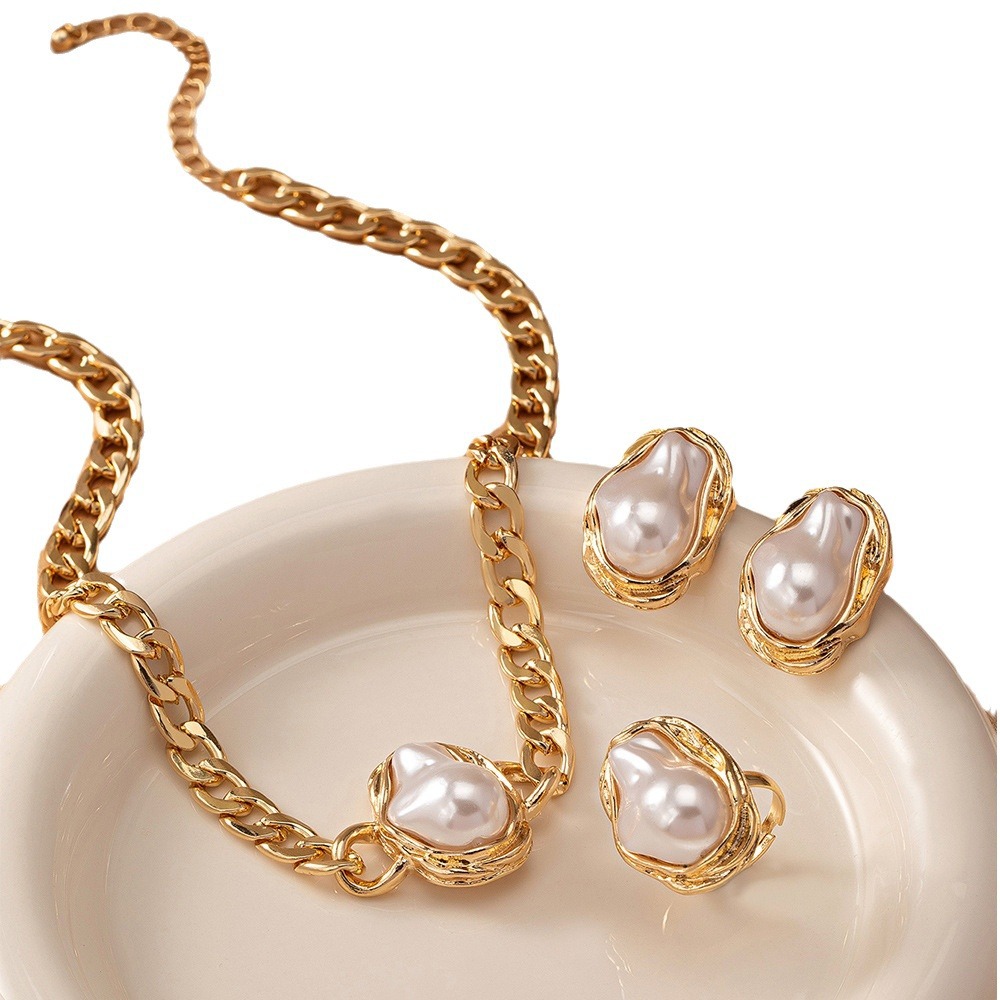 | nameOriginal | European and American Cross-border Trend Hot Sale Special-shaped Pearl suit Retro Luxury Fashion Elegant Necklace Earrings Ring suit |
