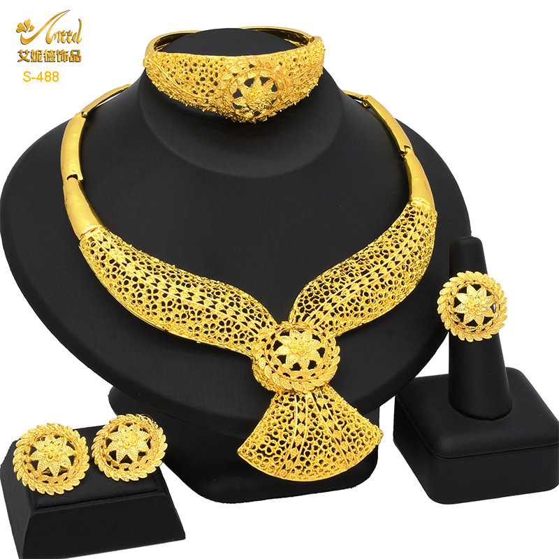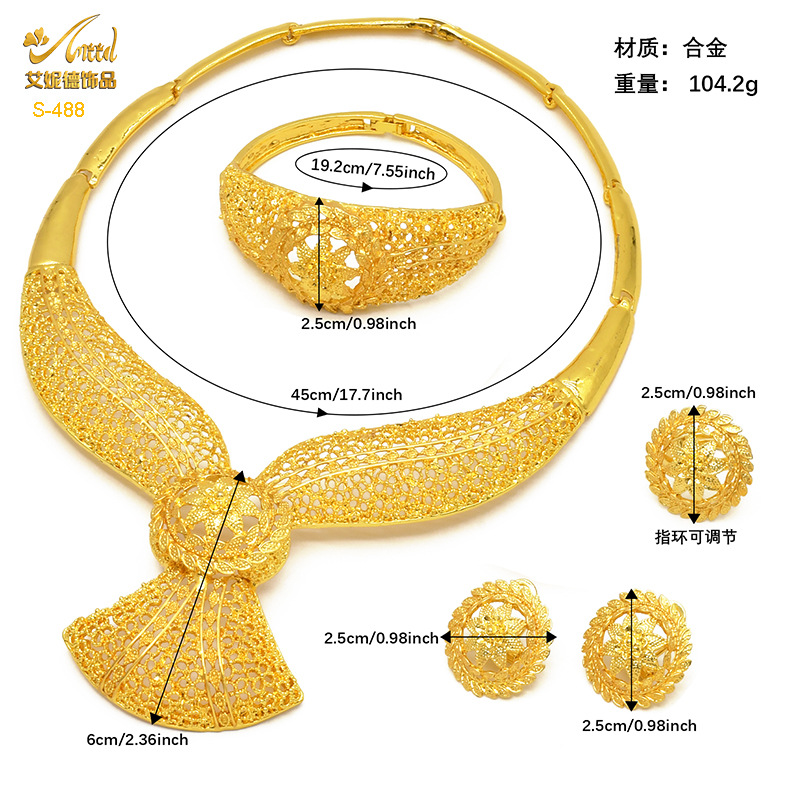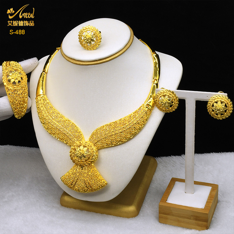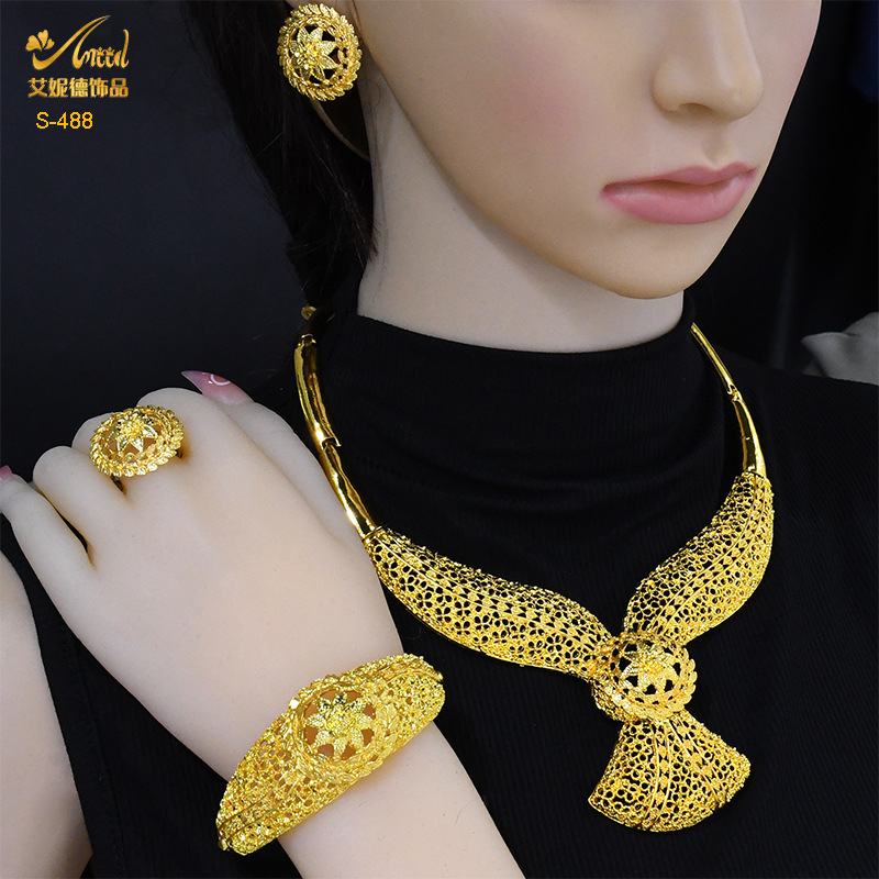 | nameOriginal | Cross-Border 24k gold-plated bridal wedding necklace earrings ring bracelet jewelry suit women's jewelry factory supply |