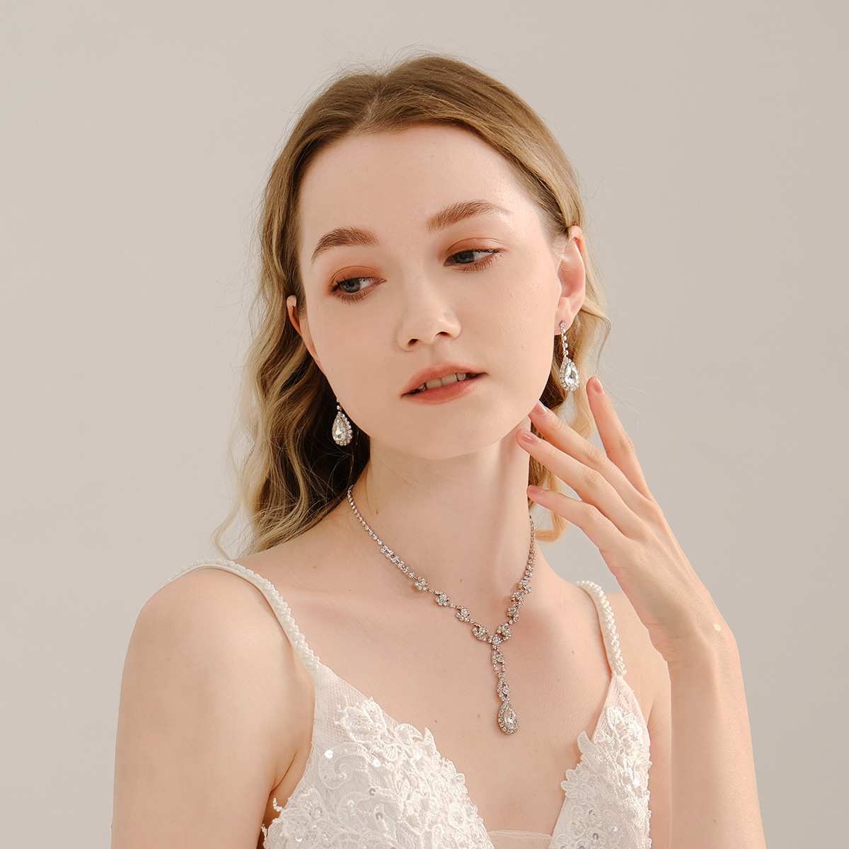 | nameOriginal | European and American retro necklace suit women's cross-border jewelry bridal wedding jewelry rhinestone pearl earrings necklace two-piece set |
