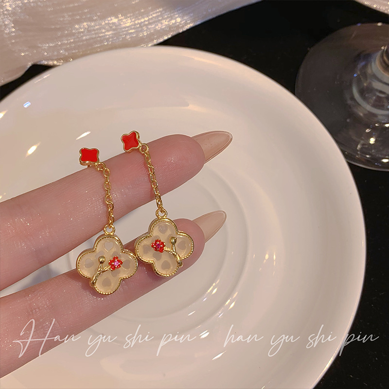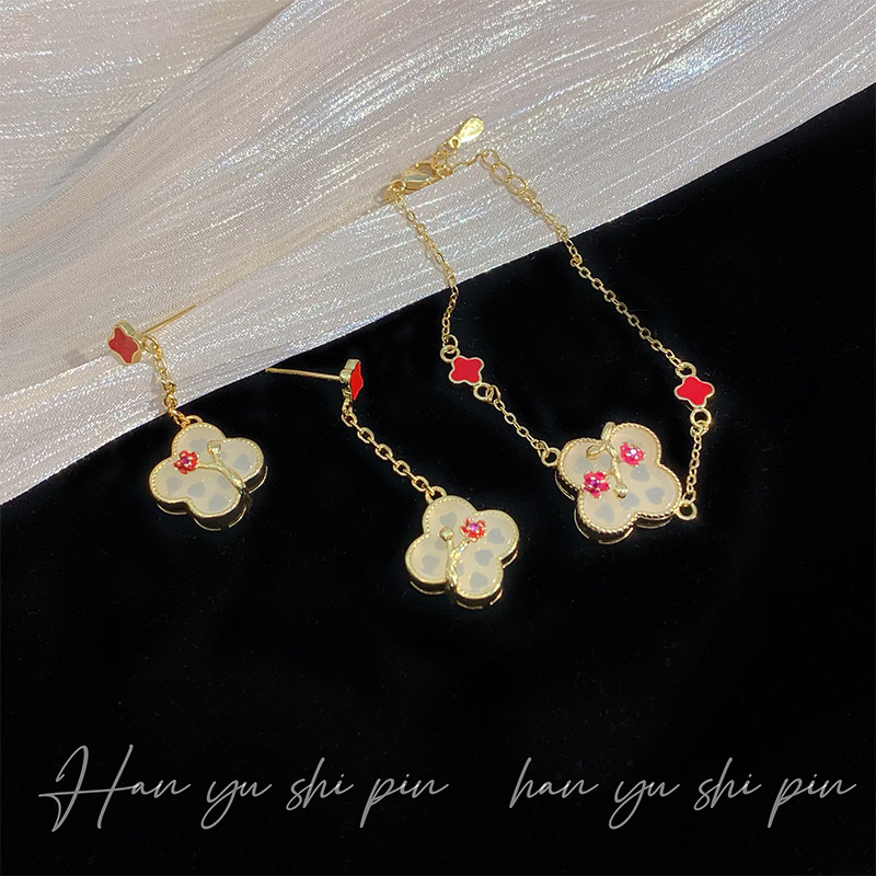 | nameOriginal | Fashion Four-leaf Grass Earrings Long Antique Painted Enamel Earrings Fashion All-match Flower Bracelet Necklace New Fashion |