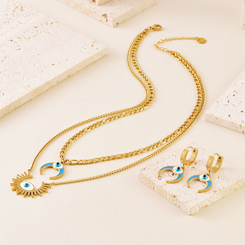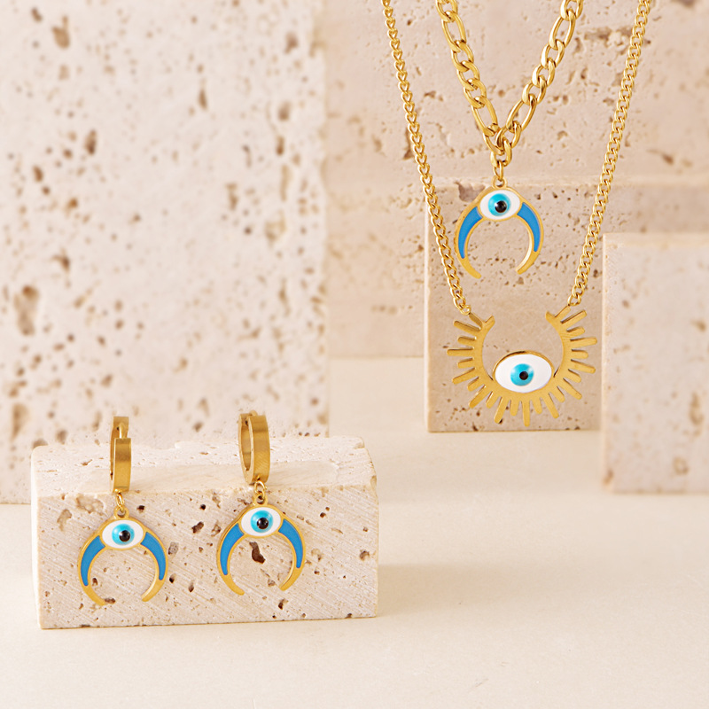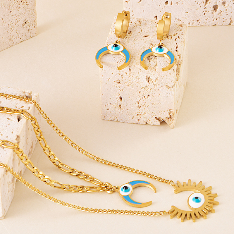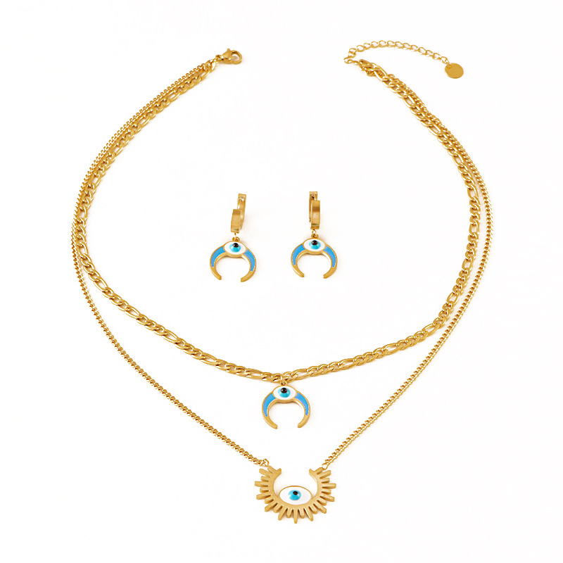 | nameOriginal | European and American Cross-border Moon Eyes Double Clavicle Chain Mang Star Devil's Eye Pendant Necklace All-match Earring Buckle suit |