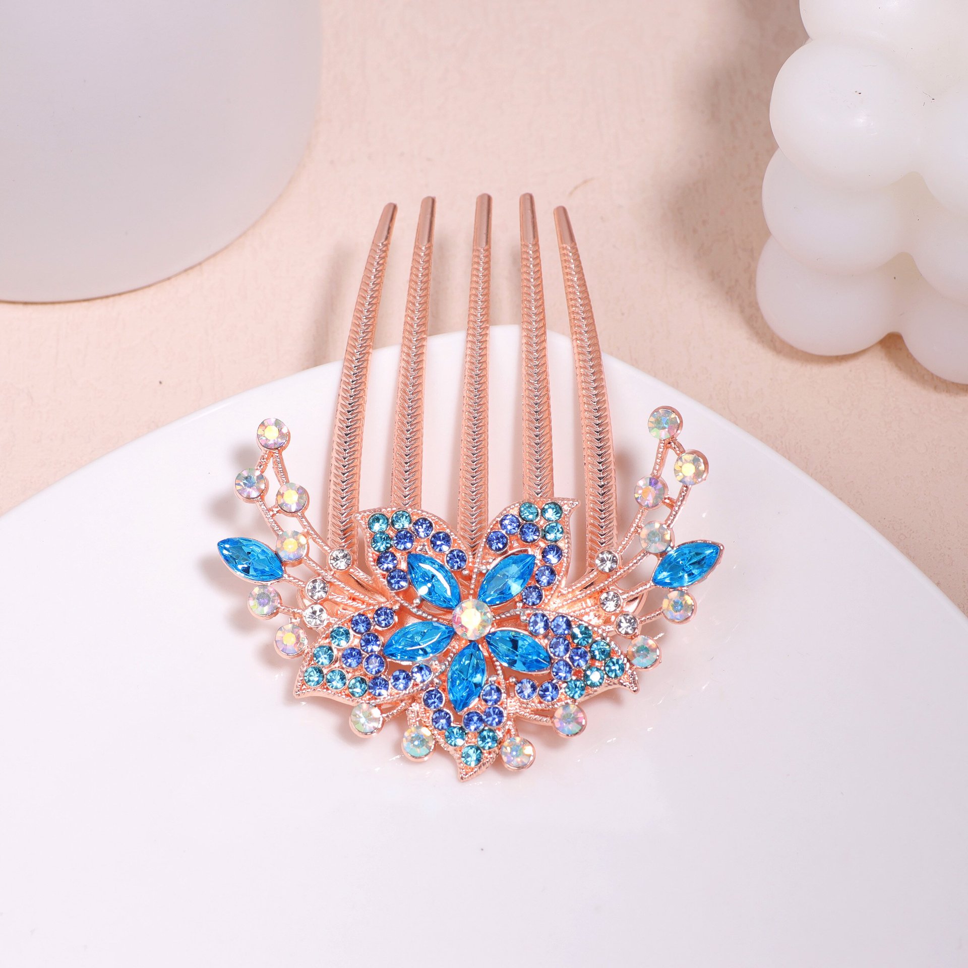 | nameOriginal | Alloy color rhinestone hair comb Korean version of the new hair accessories Crystal five-tooth comb hair clip ponytail hair fork wholesale |