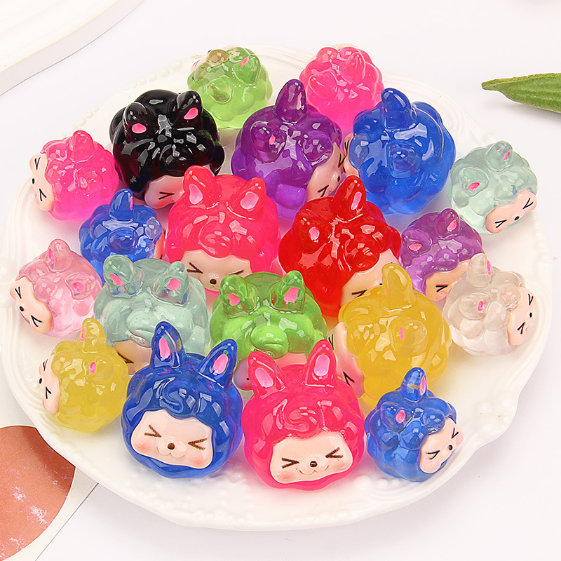 Explosive cartoon luminous ice transparent KiKi alpaca resin accessories diy cream glue key chain parking plate jewelry
