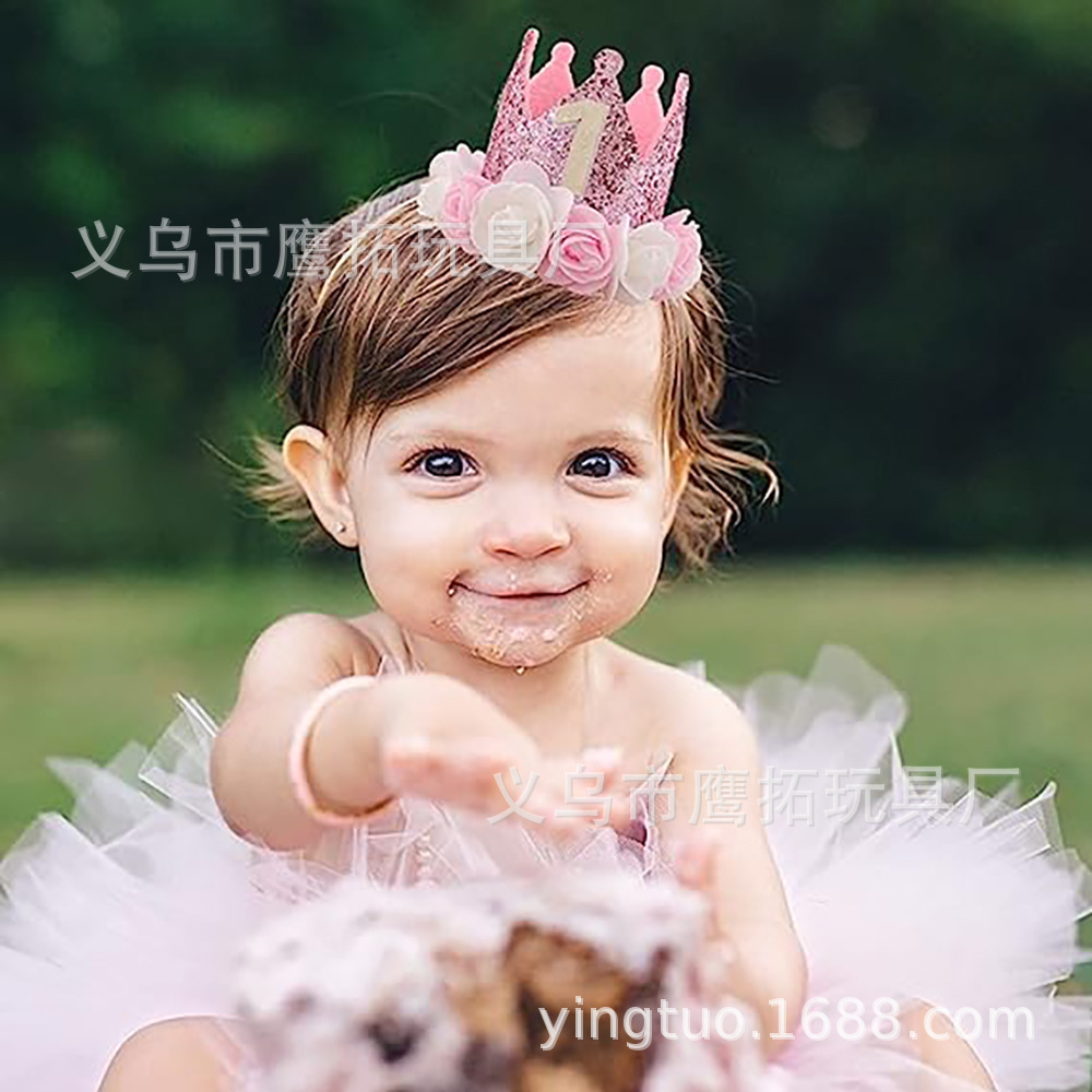 | nameOriginal | Girls 1 Year Old Theme Birthday Party Decorations Crown Hair Accessories Princess Golden Pink Crown Hair Band Birthday Hat |