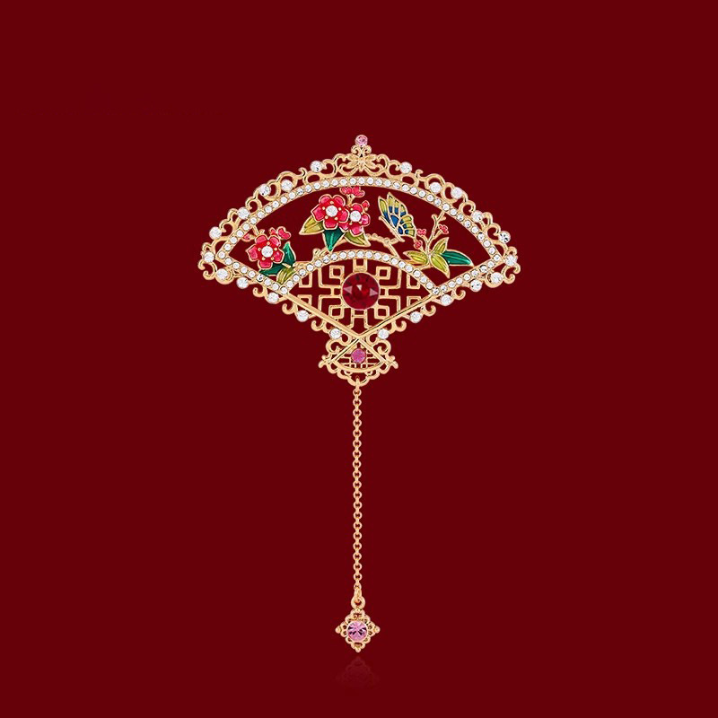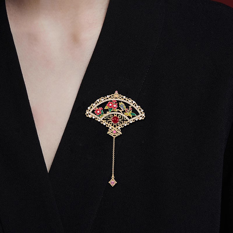 National fashion painted enamel sterling silver brooch women's high-end accessories elegant retro Austrian crystal corsage mother gift