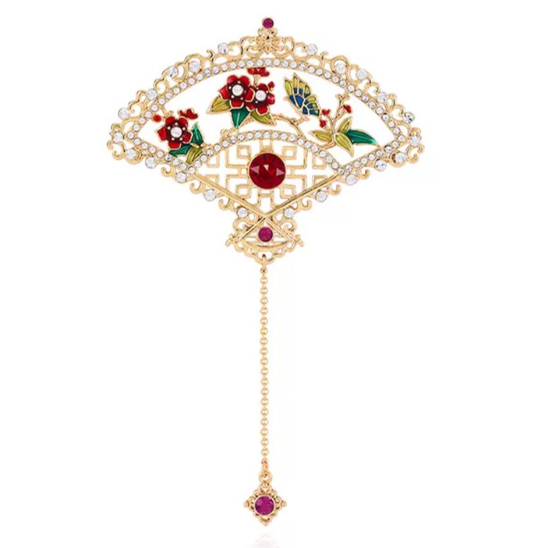 National fashion painted enamel sterling silver brooch women’s high-end accessories elegant retro Austrian crystal corsage mother gift